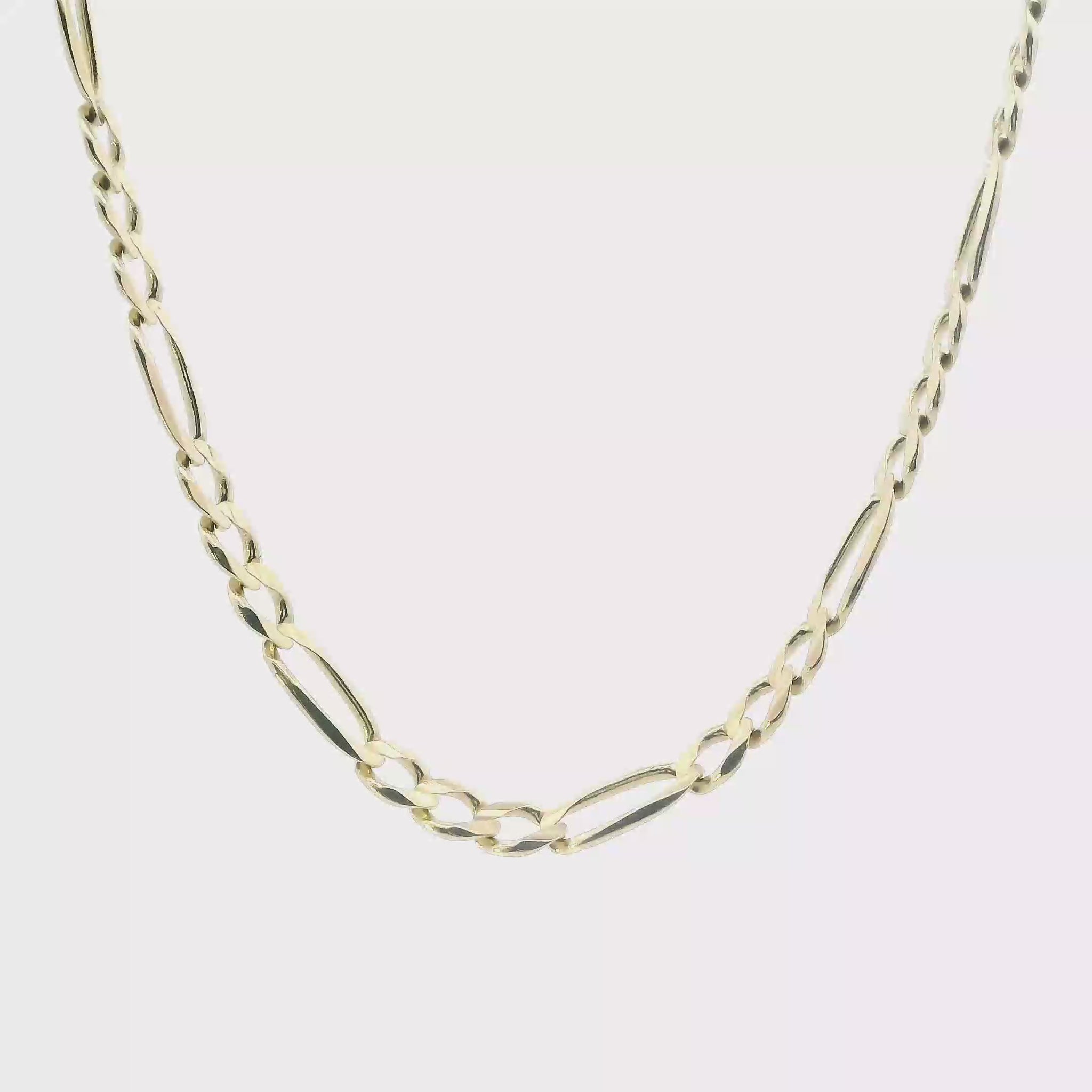 This is a beautiful gold figaro chain that is in clean preowned condition. It has been authenticated and polished by our in-house goldsmith.