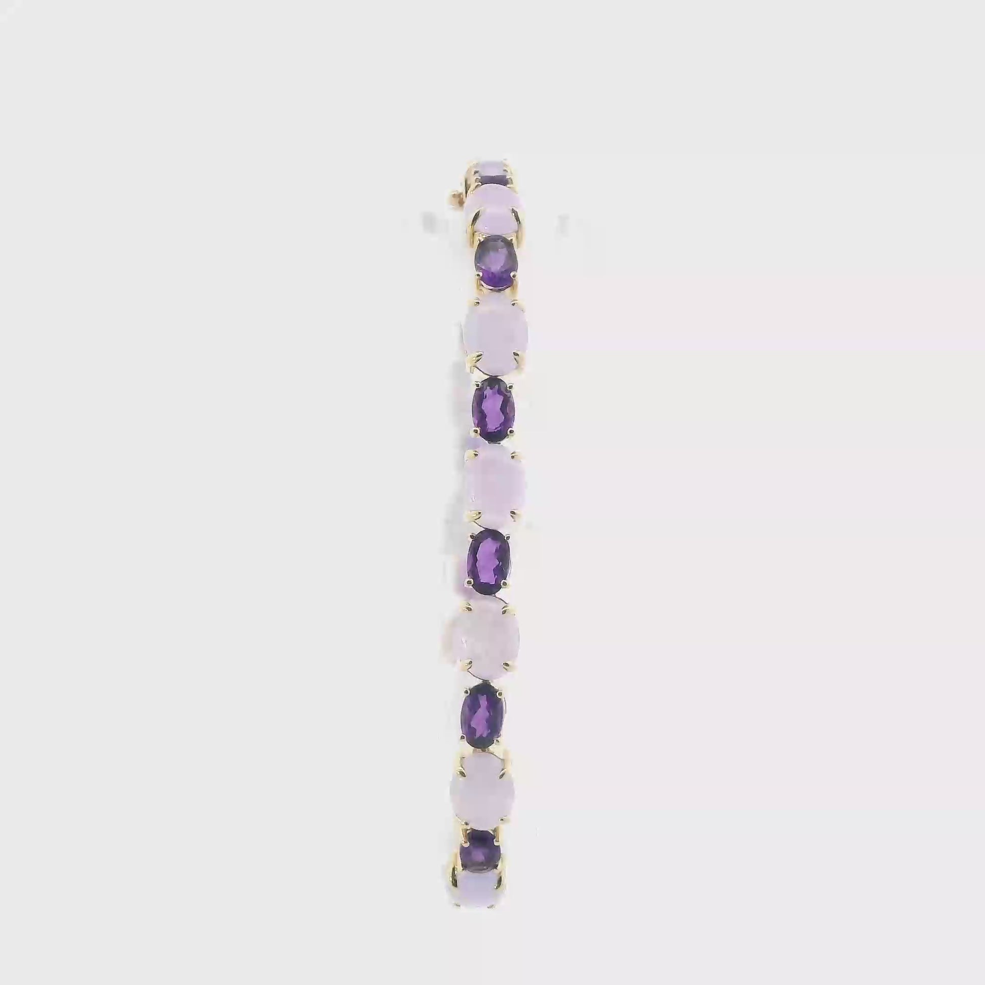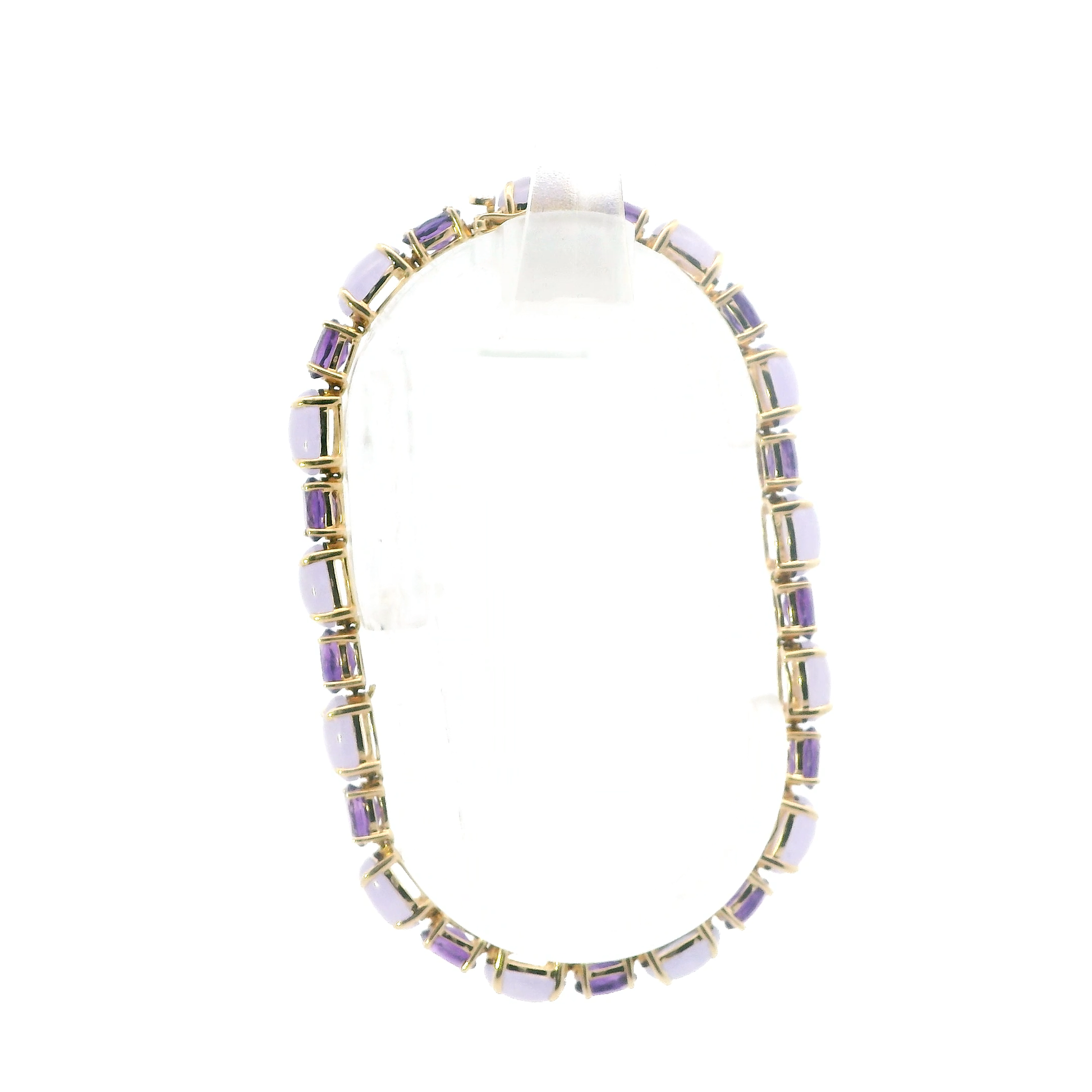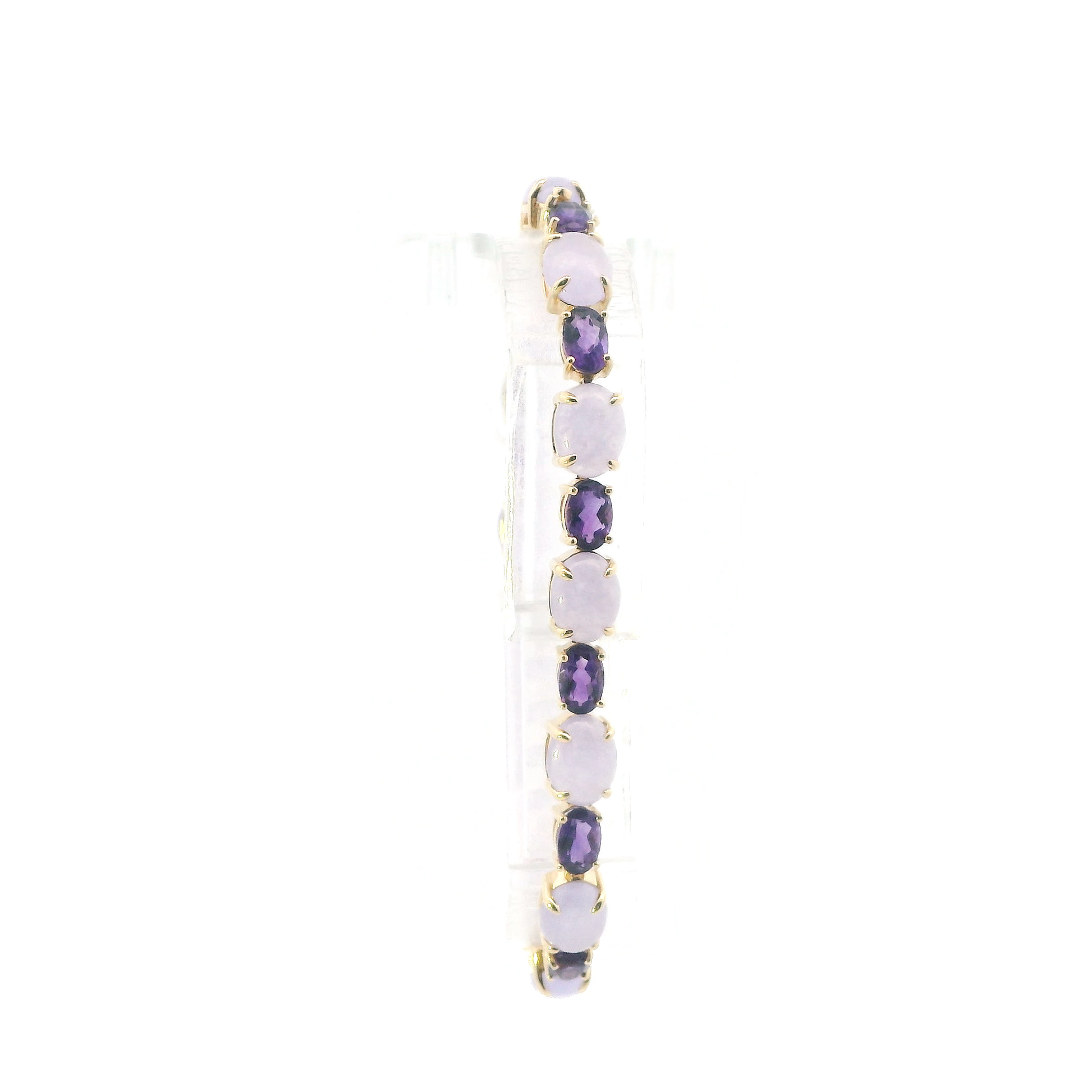 14K Yellow Gold 7.25" Lavender Jade & Amethyst Bracelet