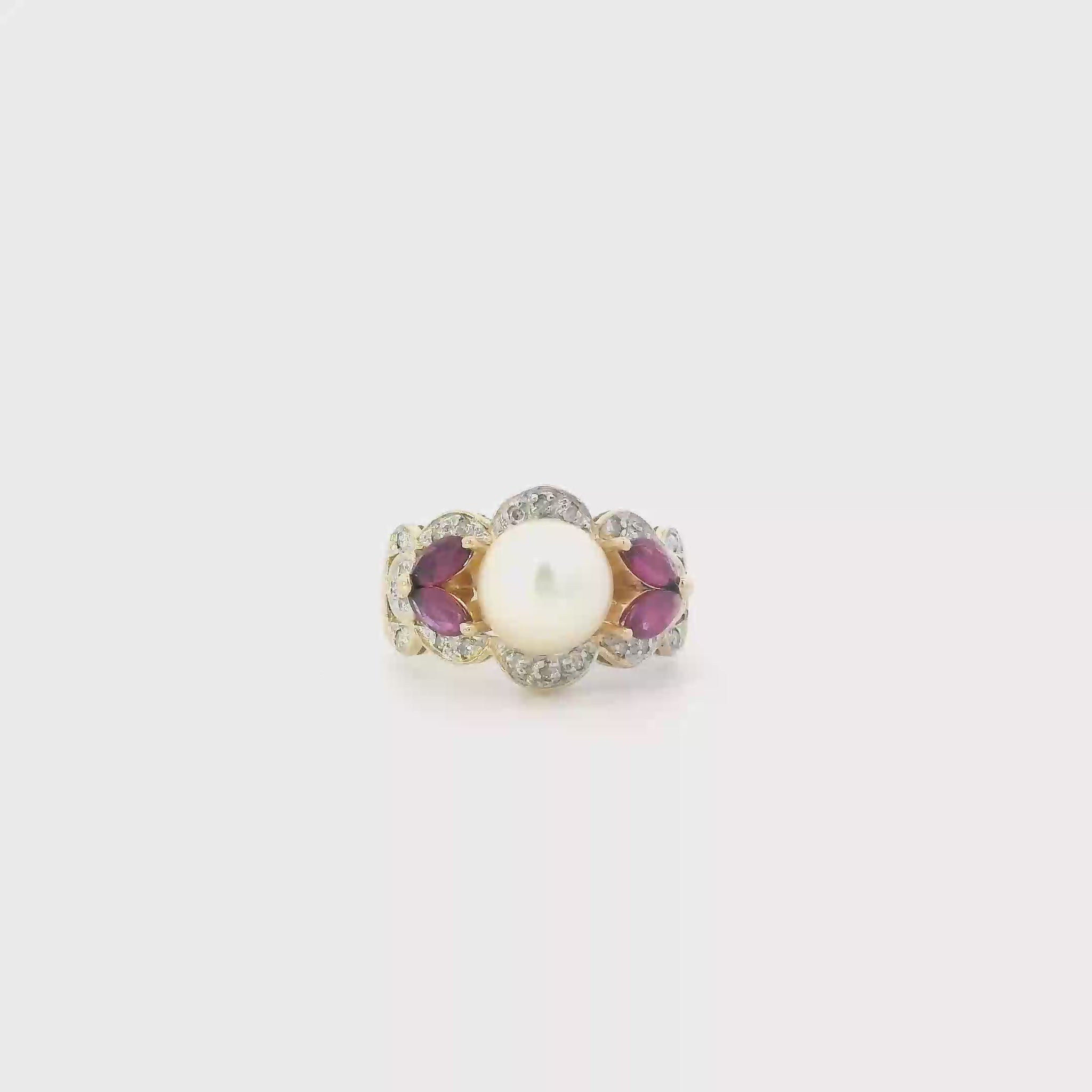 This is a beautiful gold pearl & rubies ring that is in clean preowned condition. It has been authenticated and polished by our in-house goldsmith / gemologist.