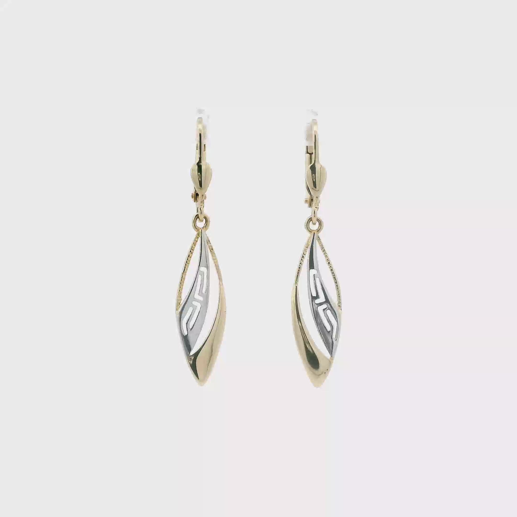 14K Yellow & White Gold Marquise Shape Dangle Earrings
