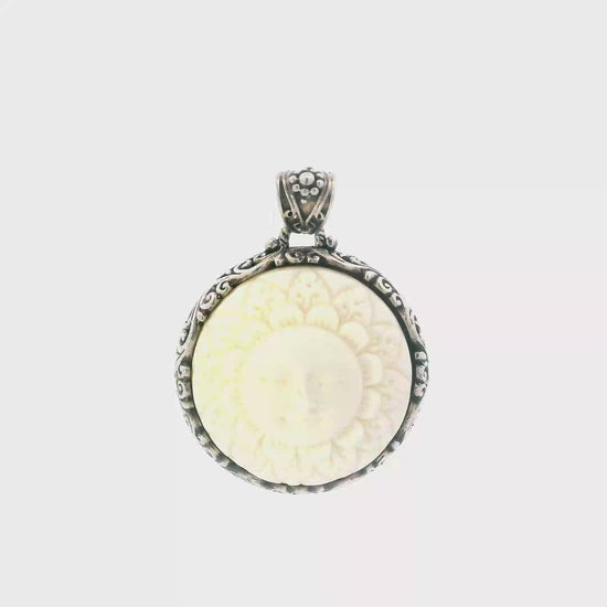 Sterling Silver White Enamel Sun Face Filigree Pendant