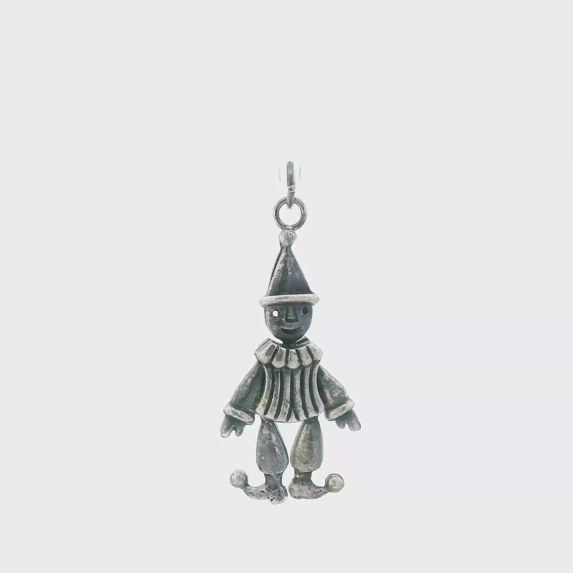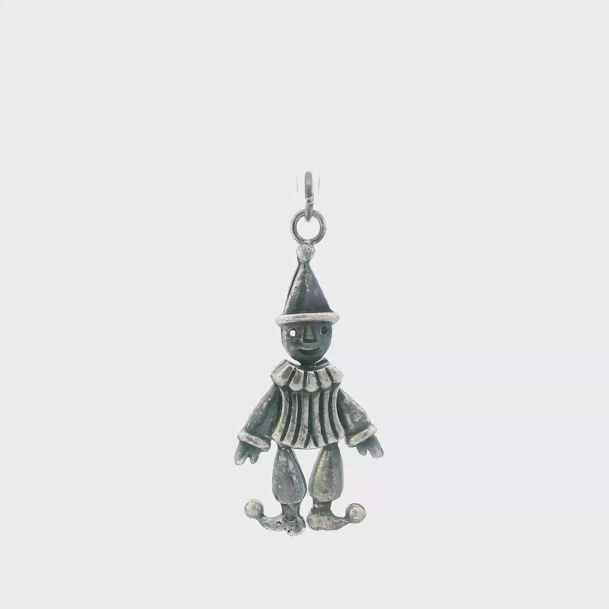 This is a beautiful vintage silver articulating clown pendant that is in clean preowned condition. It has been authenticated and polished by our in-house goldsmith / gemologist.
