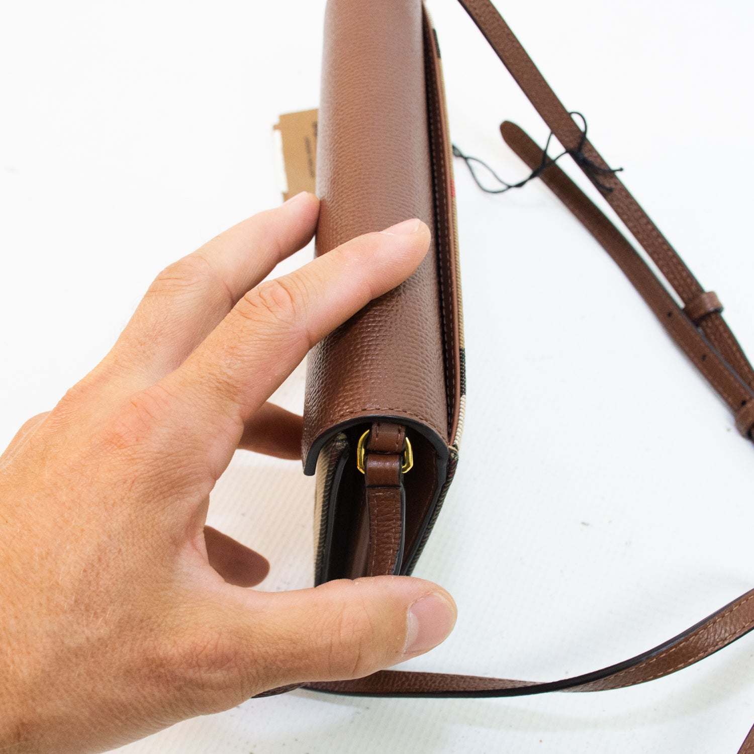 Burberry Canvas Hannah Coco House Check Derby Cross Body Wallet
