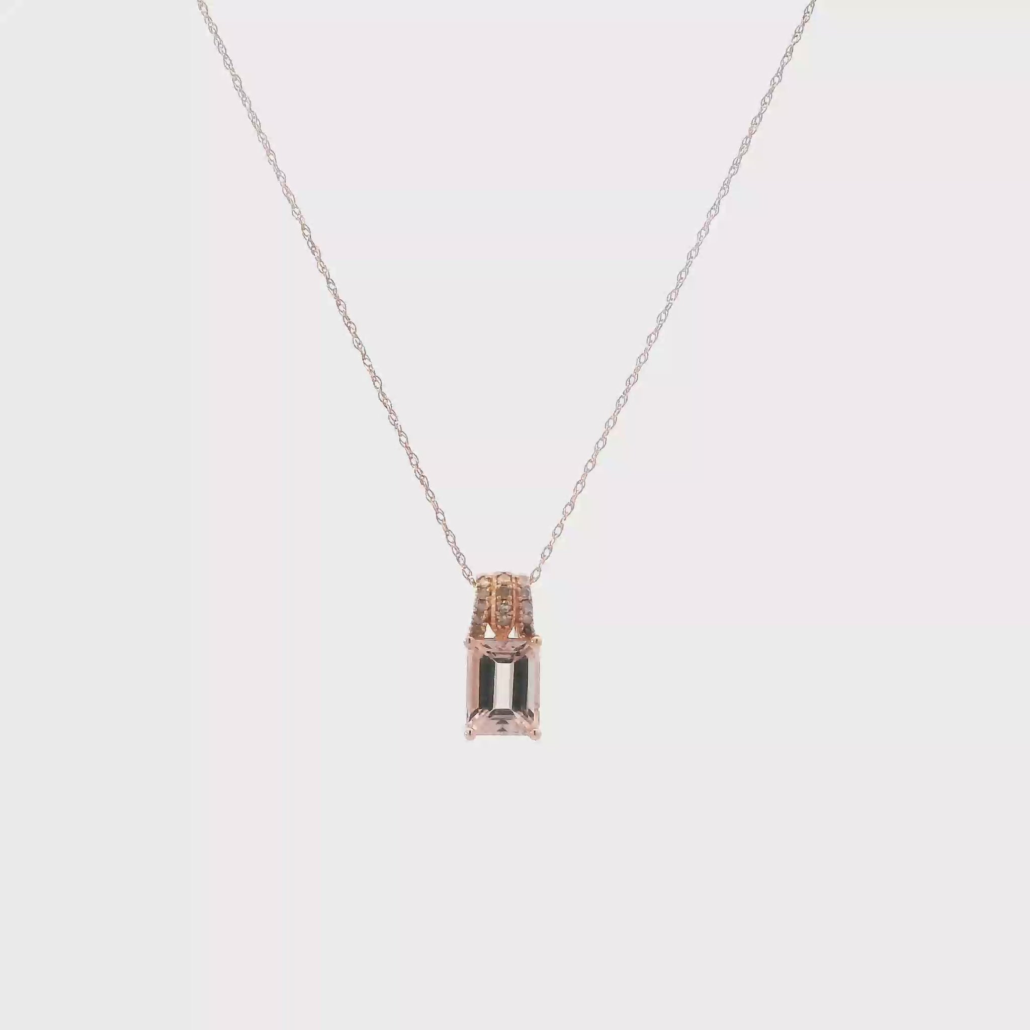 14K Rose Gold Morganite & Diamond Pendant & Rope Chain Set - 0.10ct