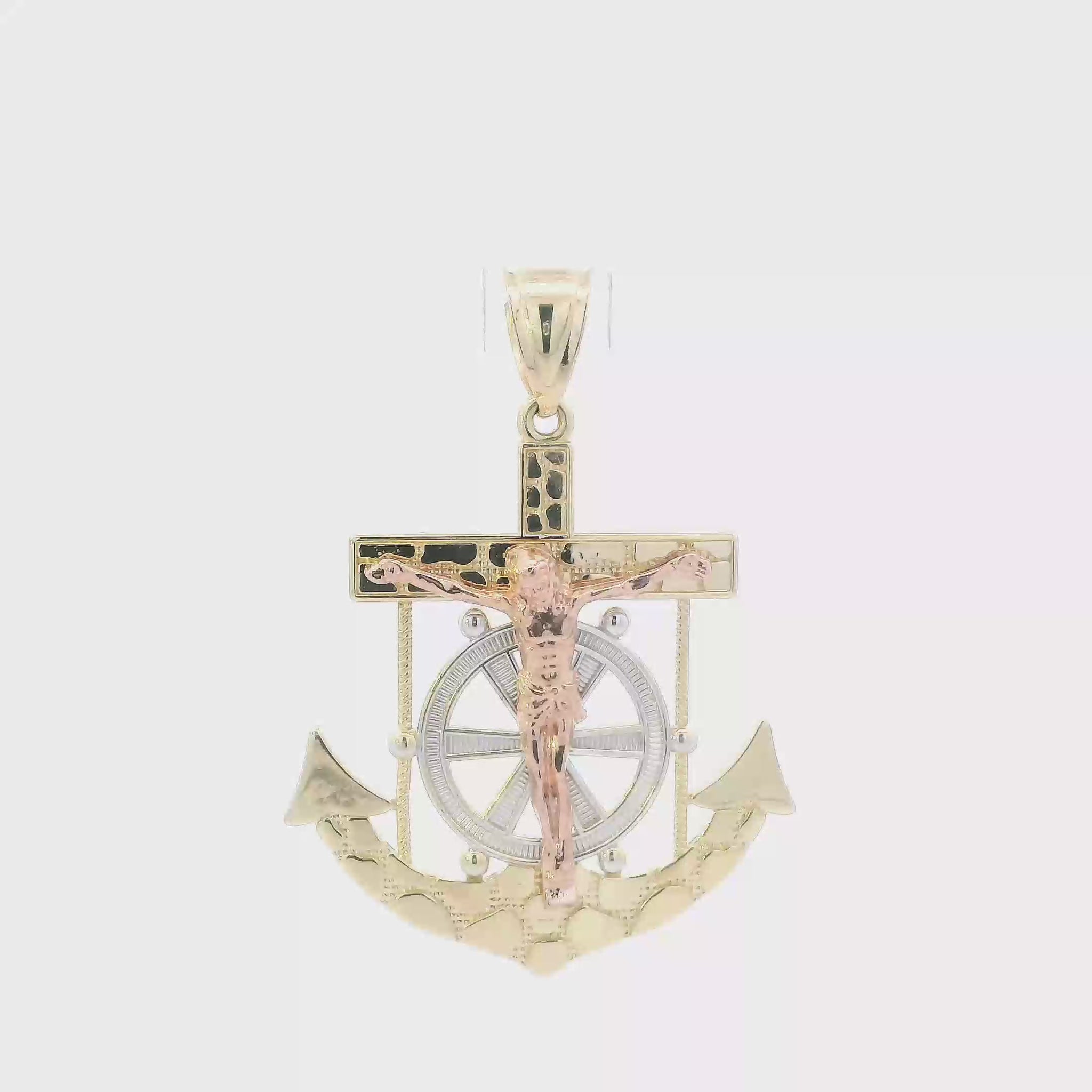 14K Yellow & Rose Gold Nugget Religious Anchor Pendant