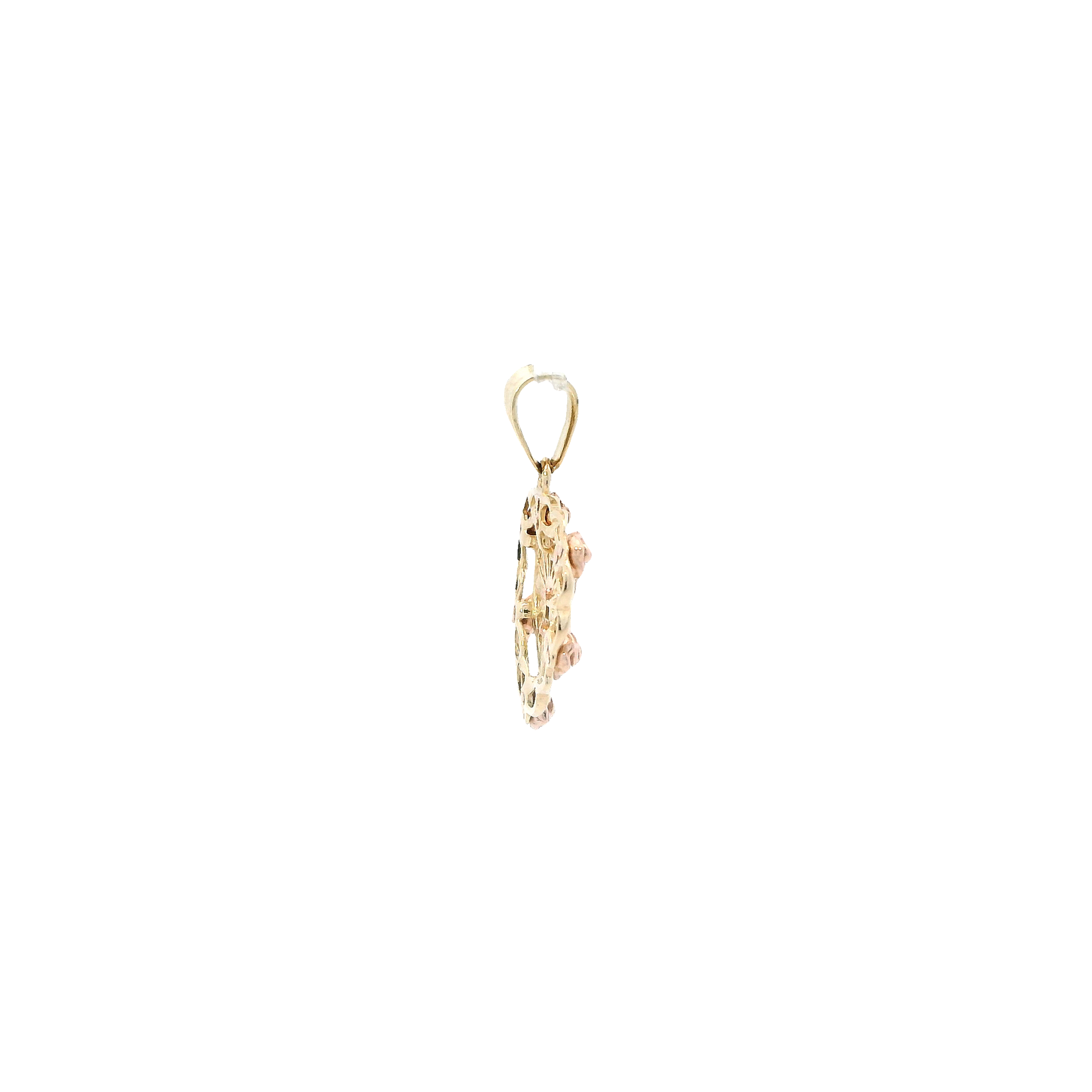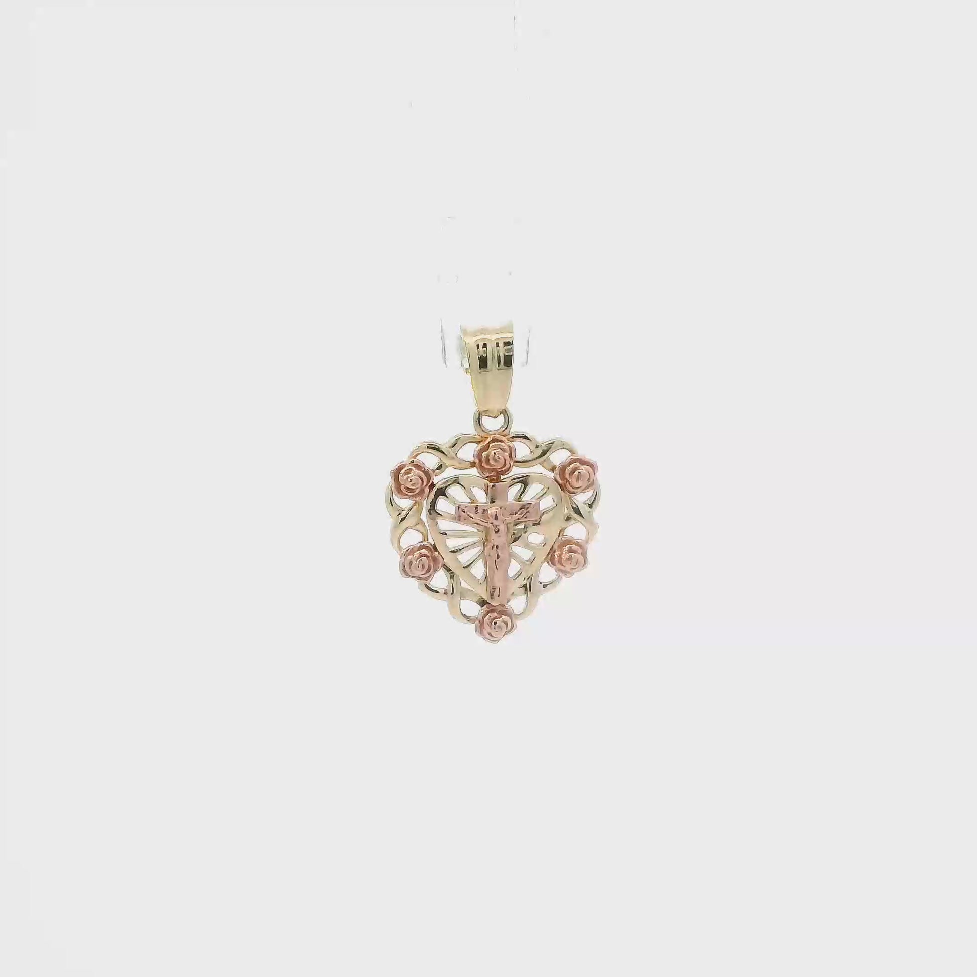 14K Yellow & Rose Gold Roses & Crucifix Heart Pendant
