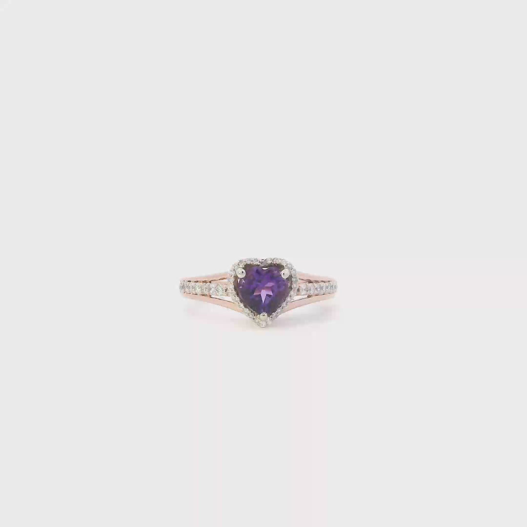 10K Rose Gold Synthetic Amethyst & Diamonds Womans Ring - 0.23ct