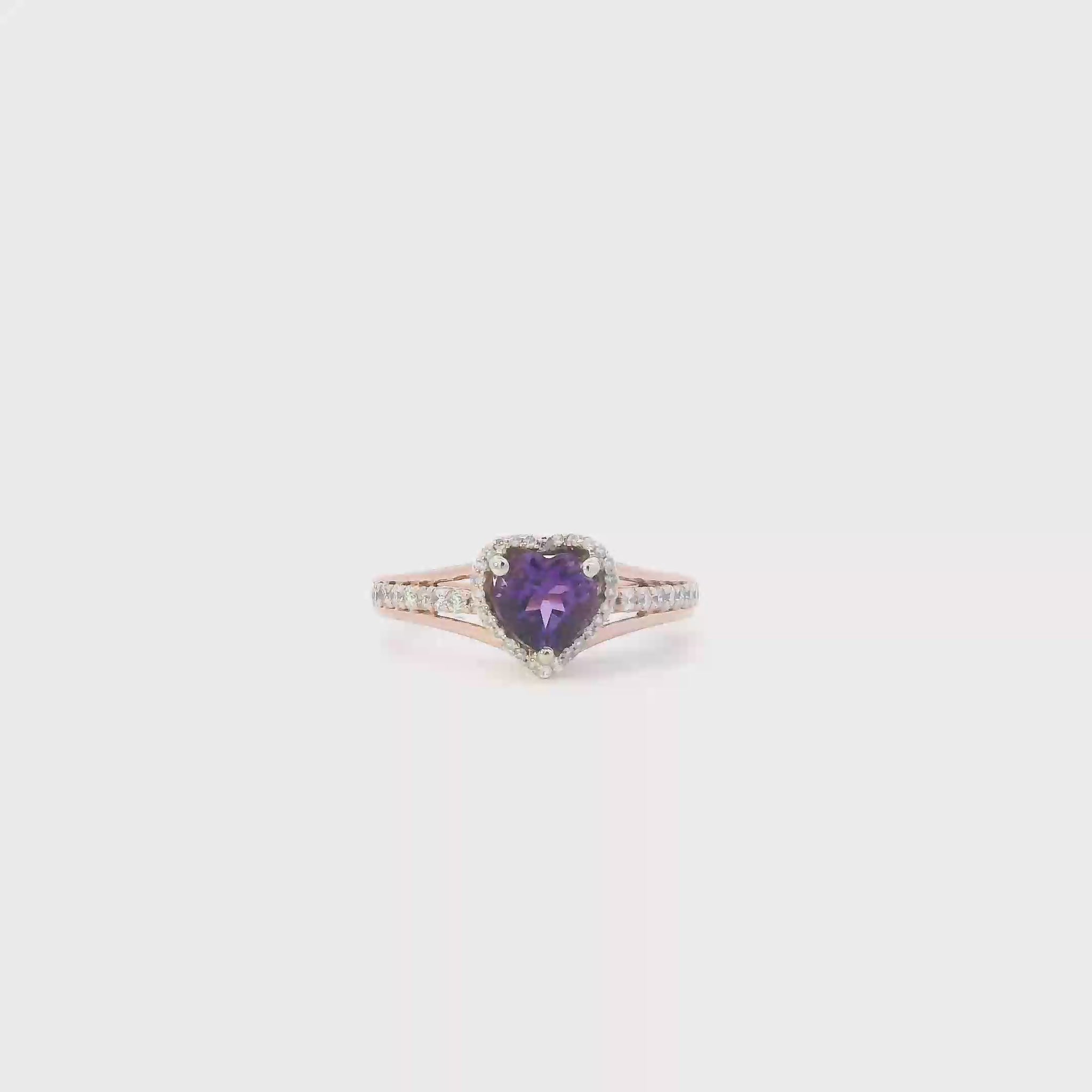 10K Rose Gold Synthetic Amethyst & Diamonds Womans Ring - 0.23ct