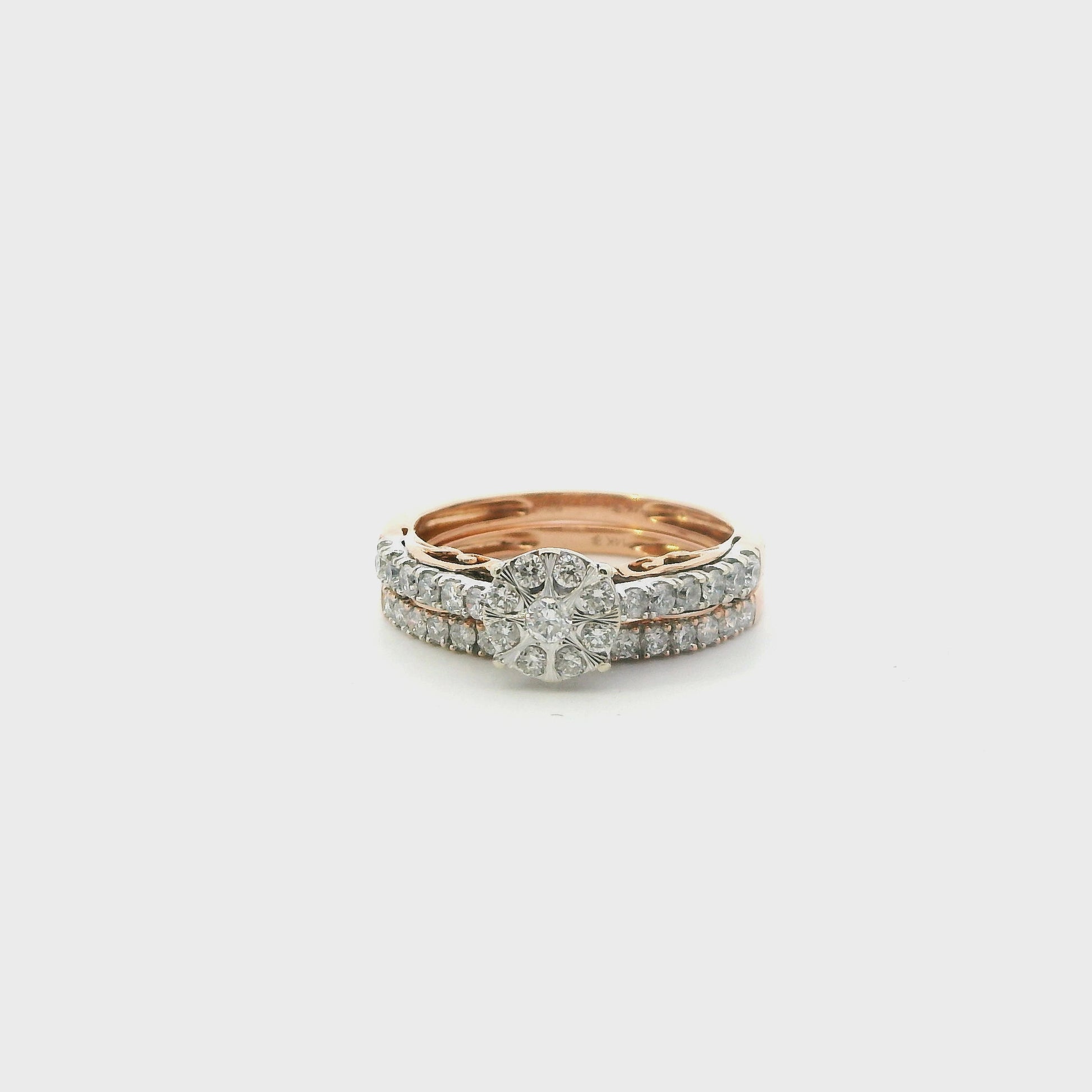 14K Rose & White Gold Diamond Engagement & Wedding Ring Set - 0.64ct