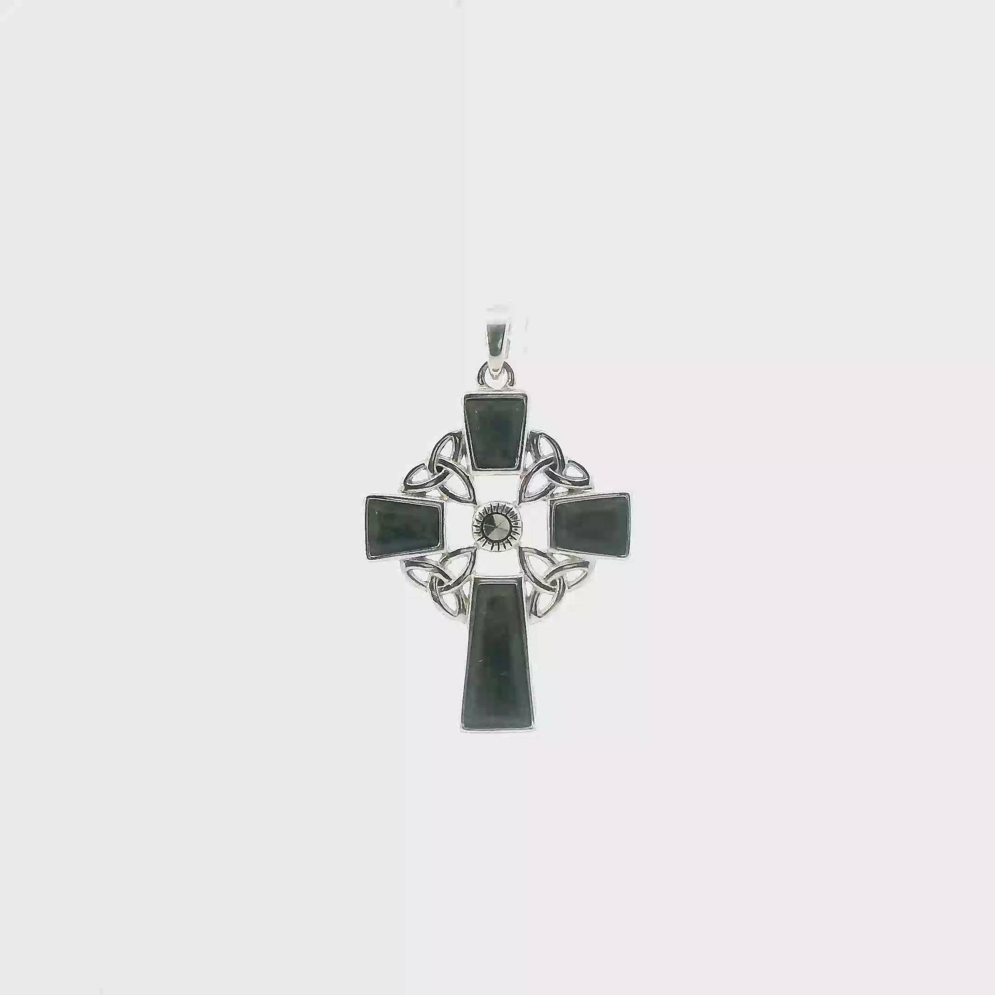 Sterling Silver Ireland Celtic Cross Marcasite Pendant