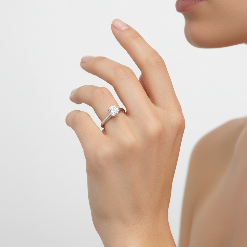 14K White Gold Diamond Solitaire Women's Ring 0.59ct