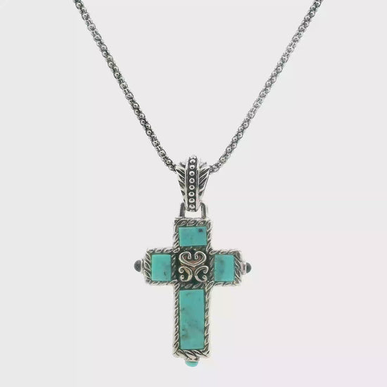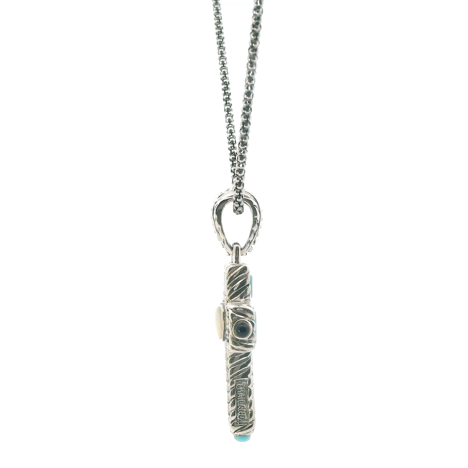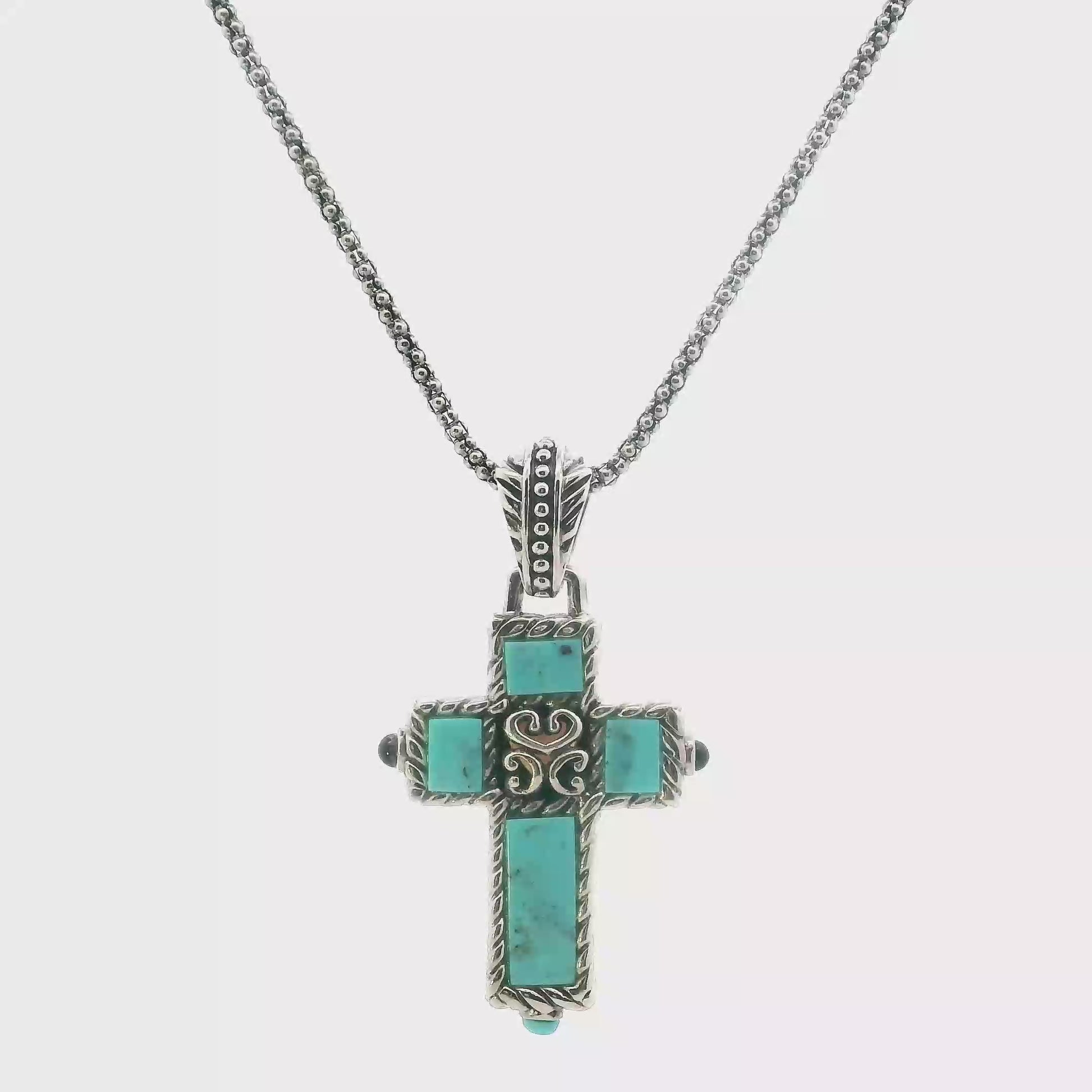 Sterling Silver 20" Beaded Chain W/ Reversible Cross Pendant