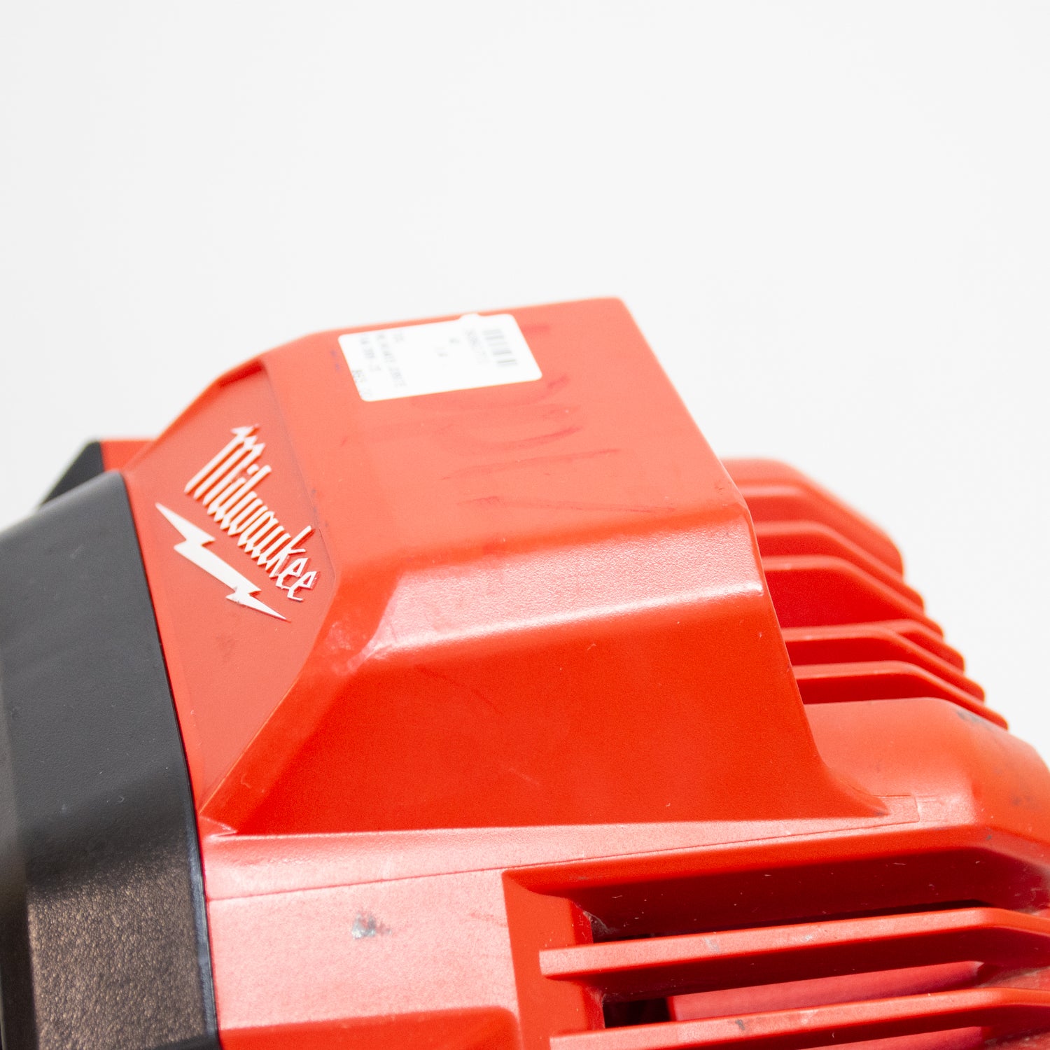 This is a preowned job site fan in good used clean condition. It has normal used condition markings like cosmetic scratches and dust and dirt. It is fully functional.