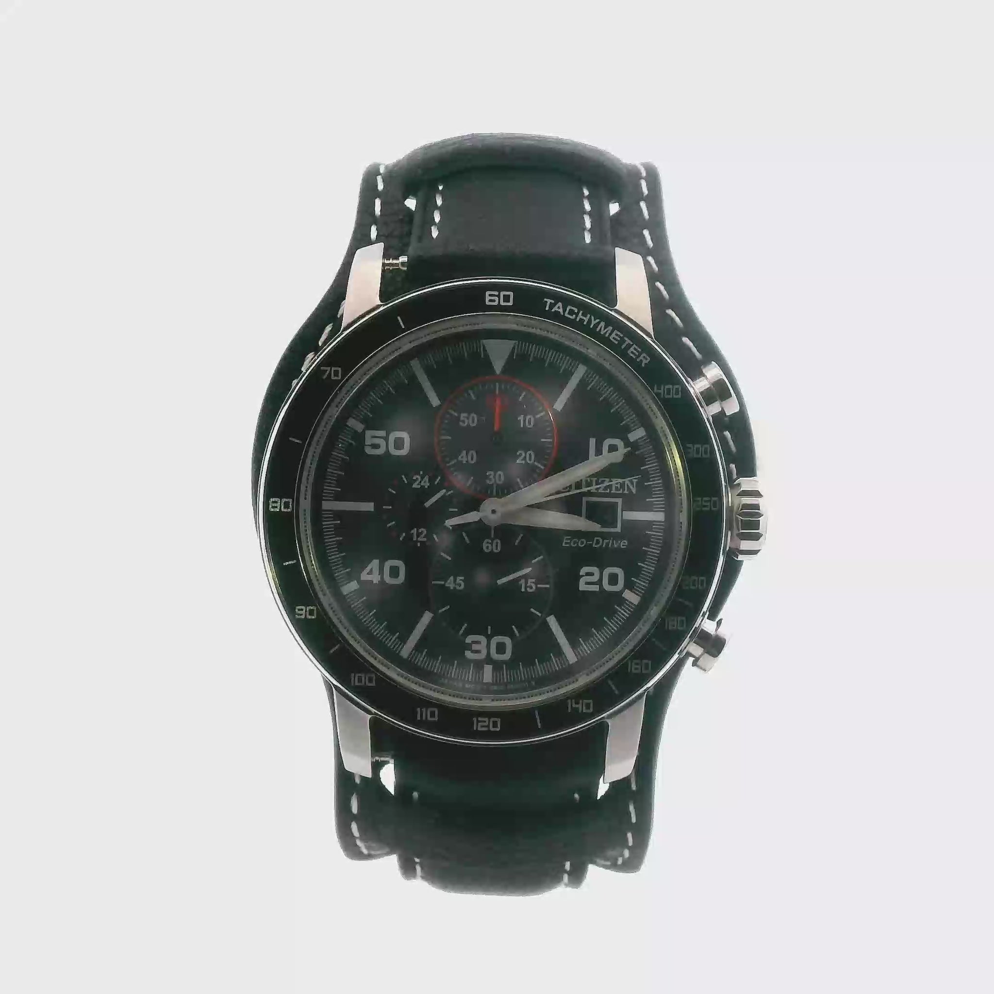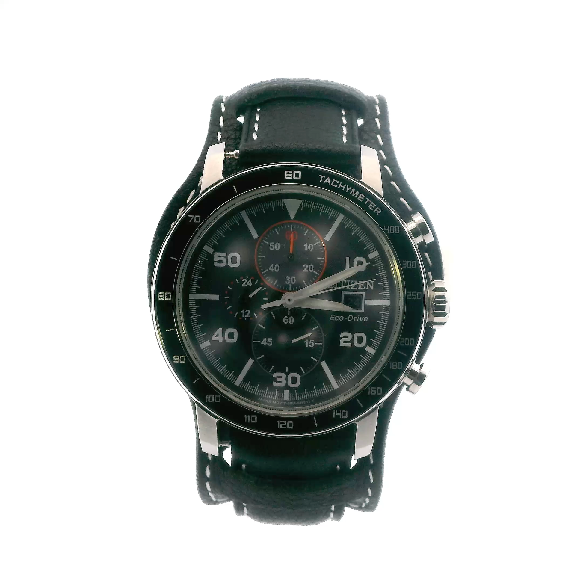 This is a beautiful citizen eco-drive tachymeter brycen chronograph wristwatch that is in clean preowned condition. It shows little to no signs of wear. It is fully functional and ready for wear.