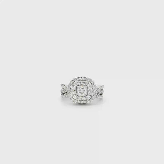 10K White Gold Lab Grown Diamonds Womens Engagement & Wedding Ring Set - 1.14ct