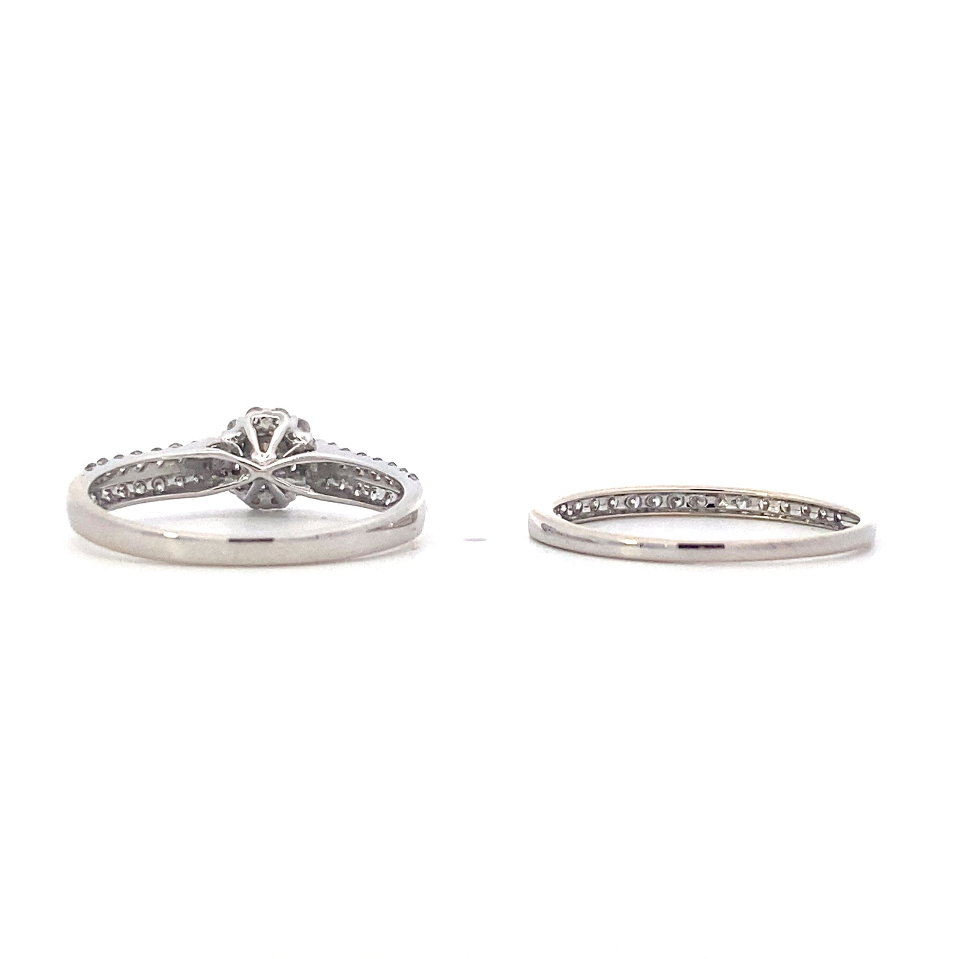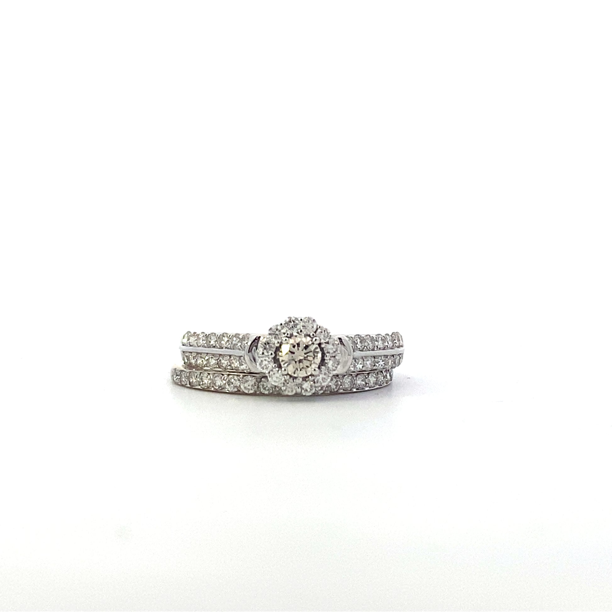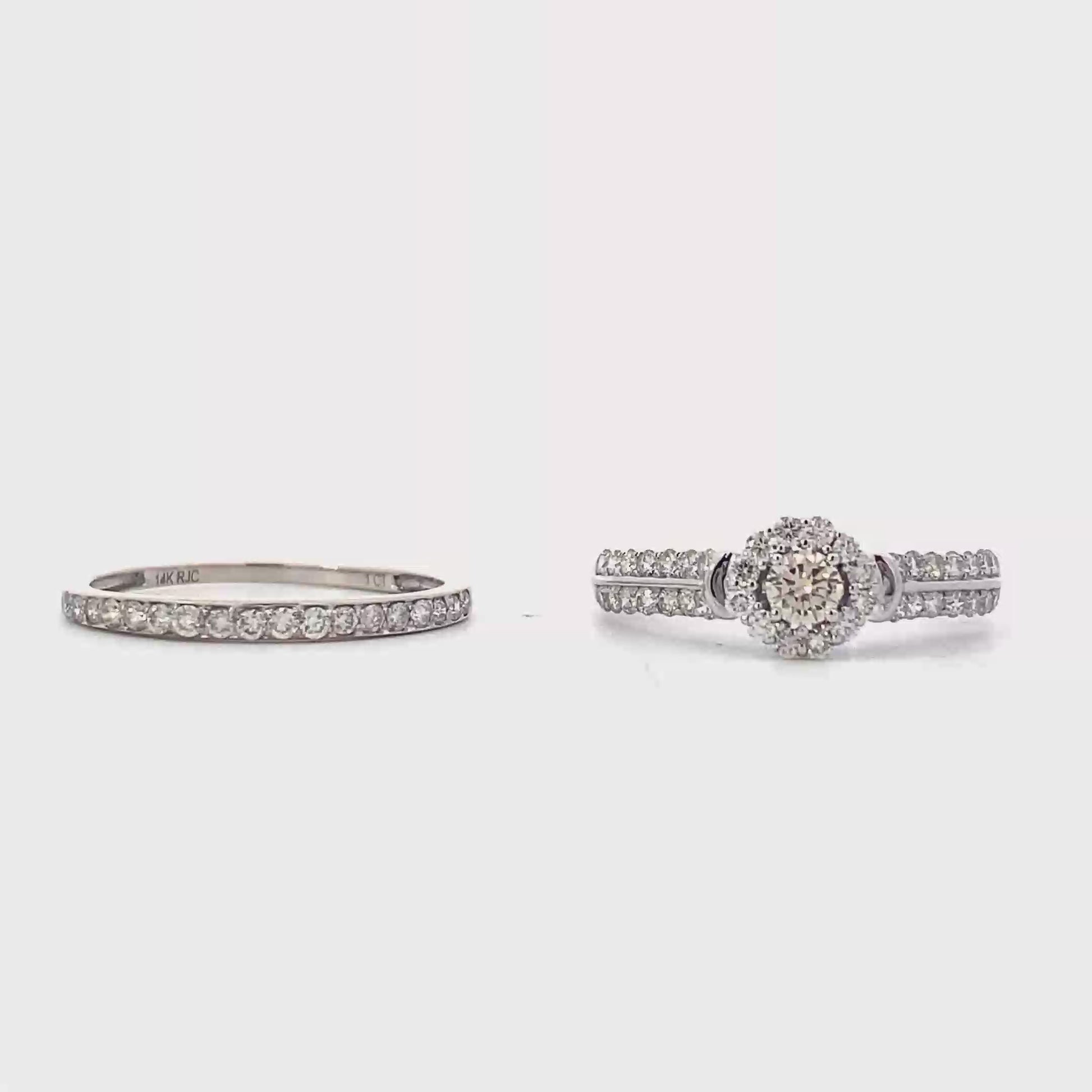 14K White Gold Diamond Women's Engagement & Wedding Ring Set - 0.82ct