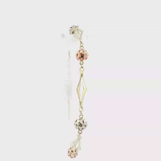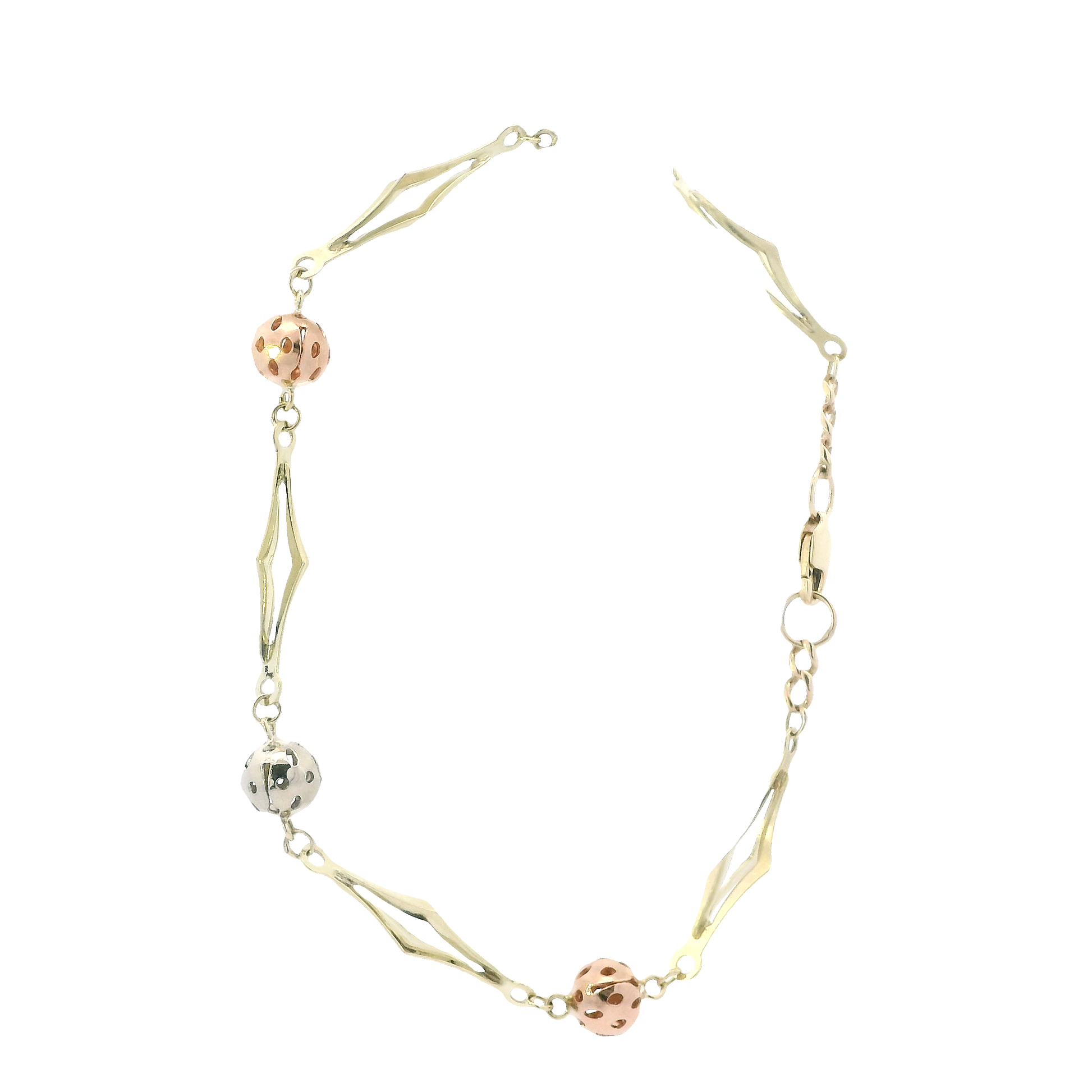 14K Tri Color Gold Beaded Diamond Shaped Link Bracelet