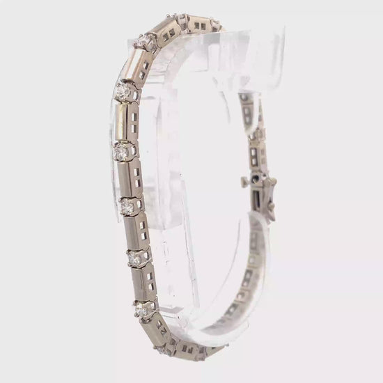 14K White Gold Diamond Bar Link Bracelet - 1.80ct