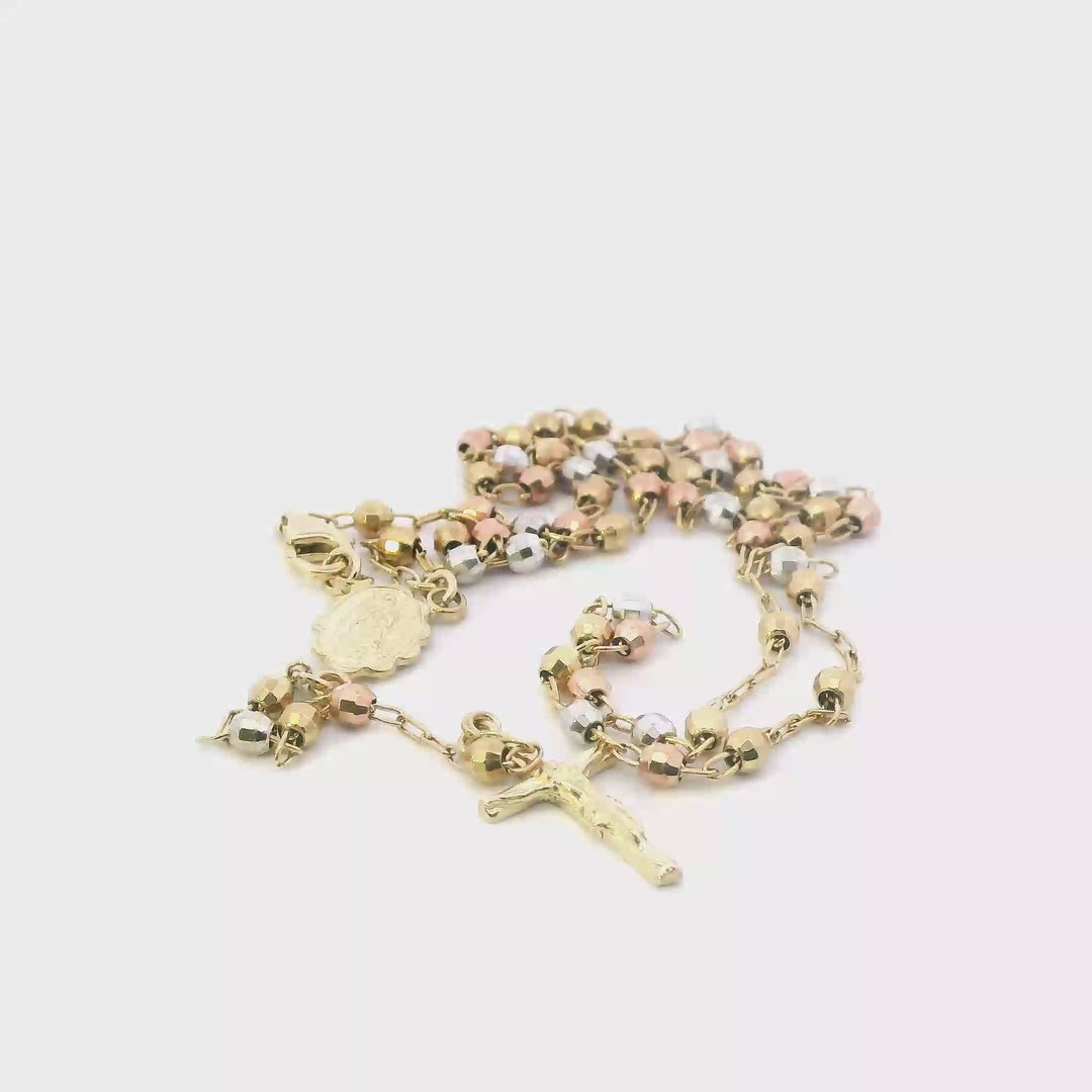 10K Tri Color Gold 18" Beaded Rosary Chain