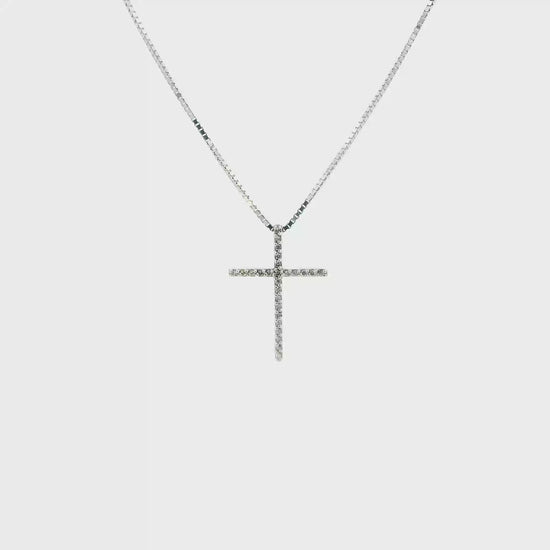 10K White Gold Diamond Cross Pendant & 24" Box Chain