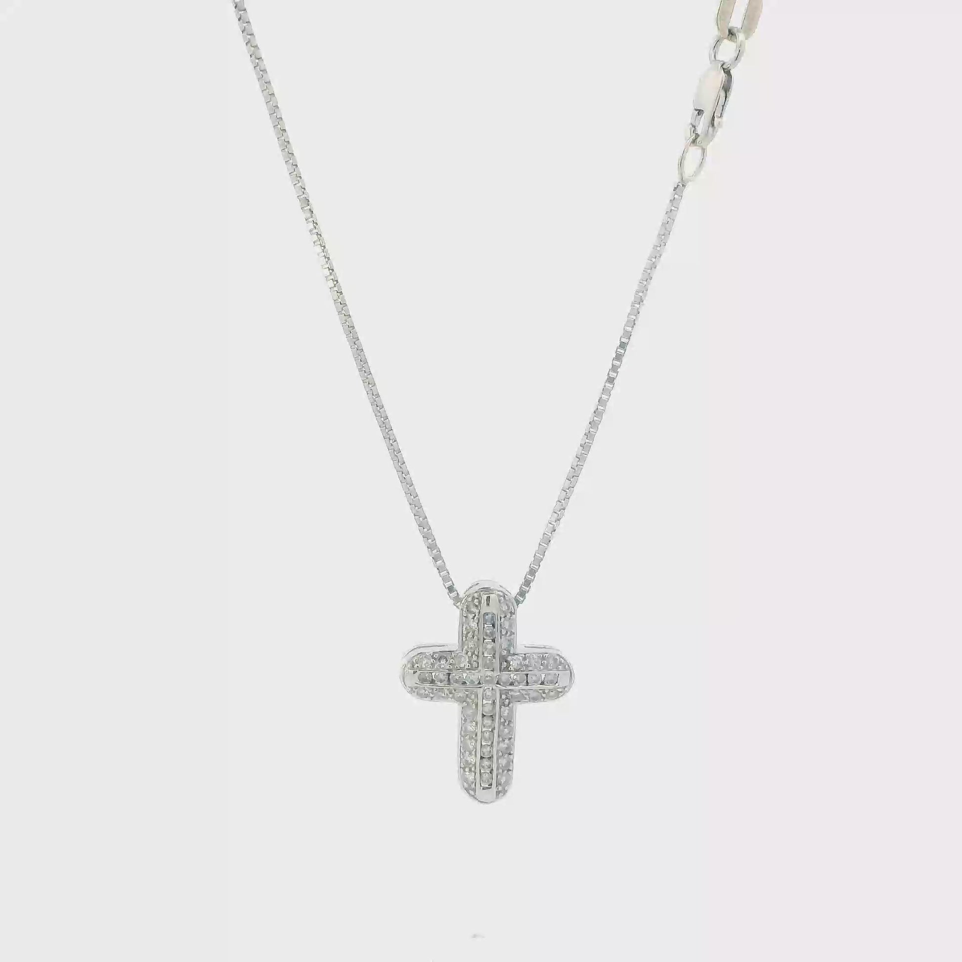 14K White Gold Diamonds Cross Pendant & 18" Box Chain - 0.34ct