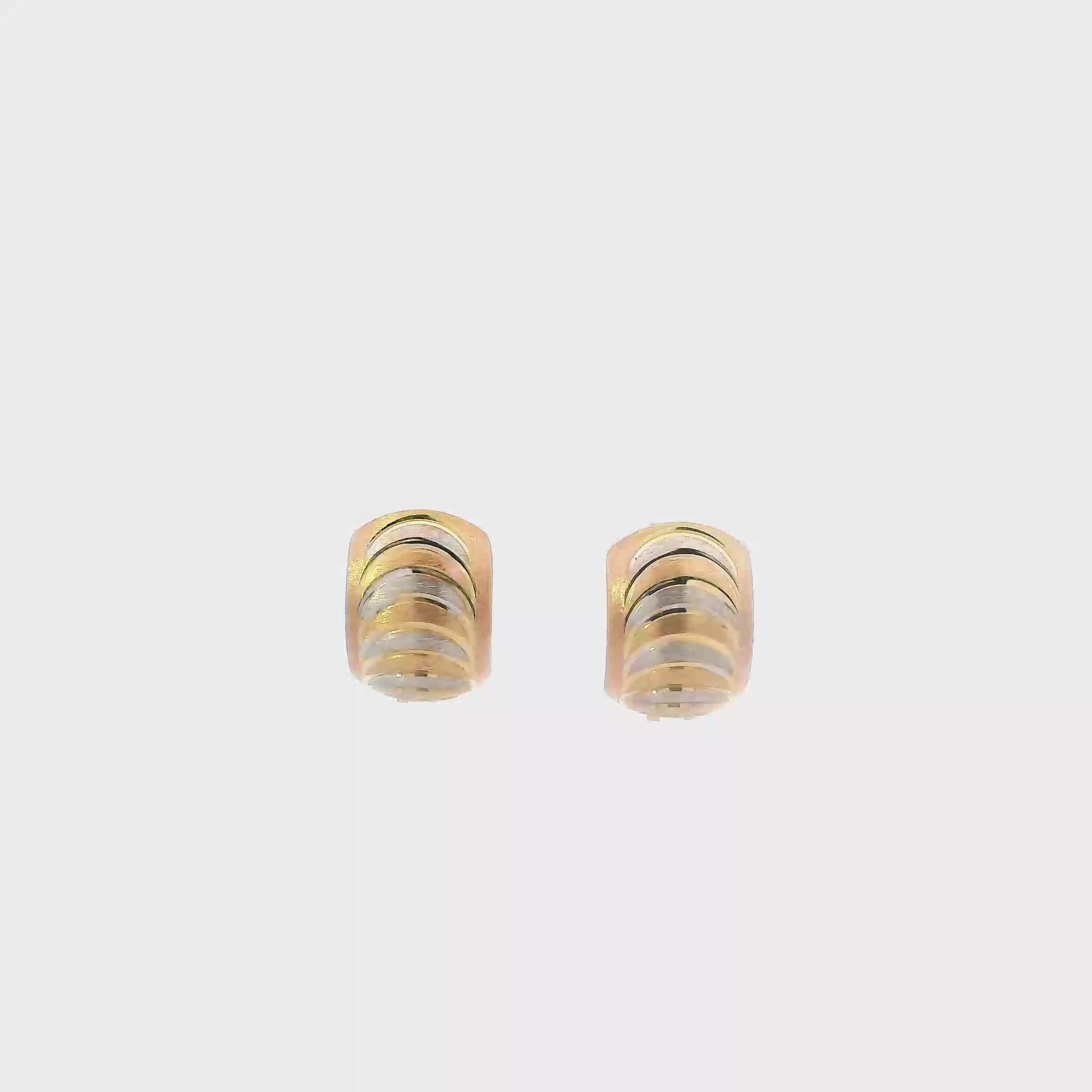 14K Tri Color Gold Huggie Hoop Earrings