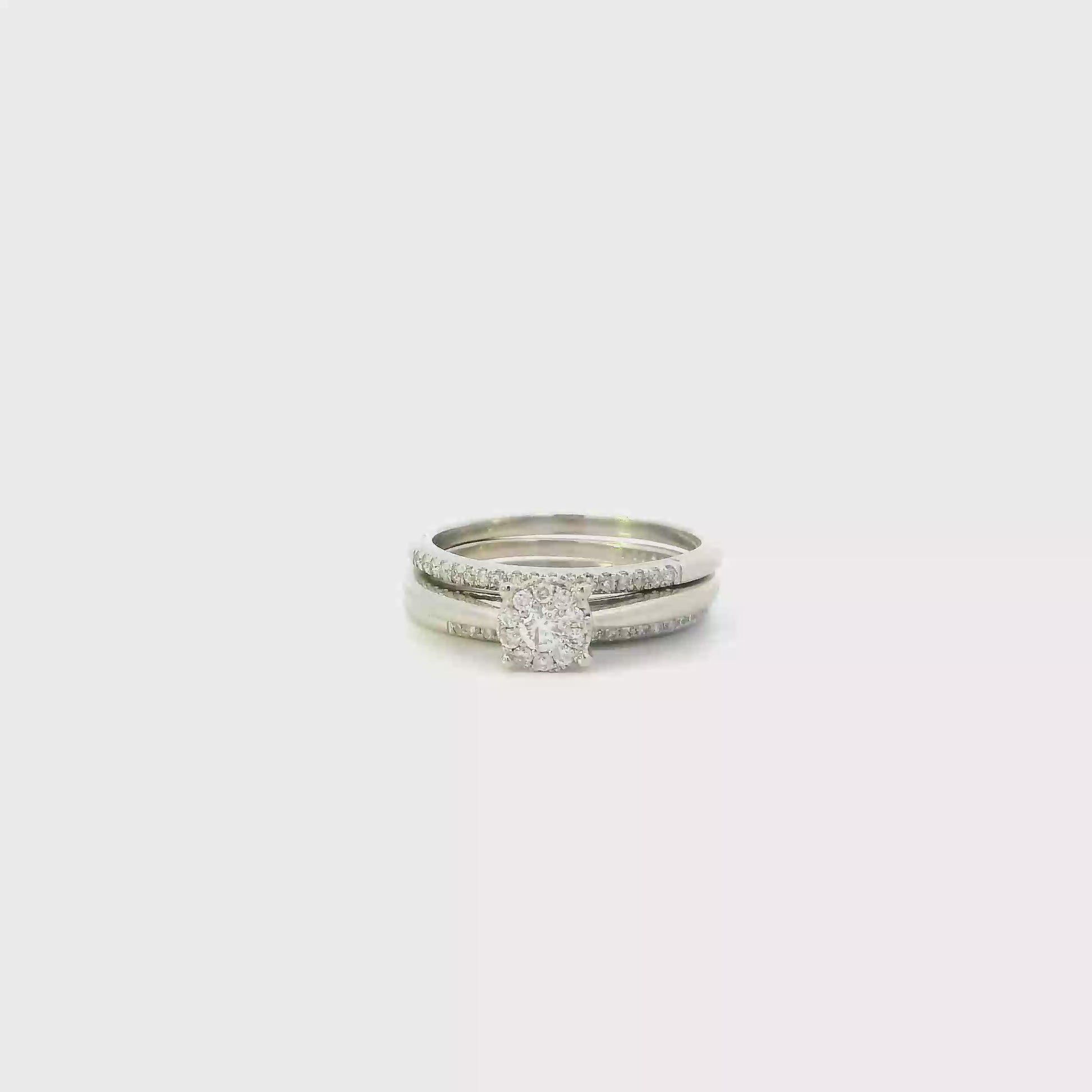 10K White Gold Diamond Women's Engagement & Wedding Ring Set - 0.46ct