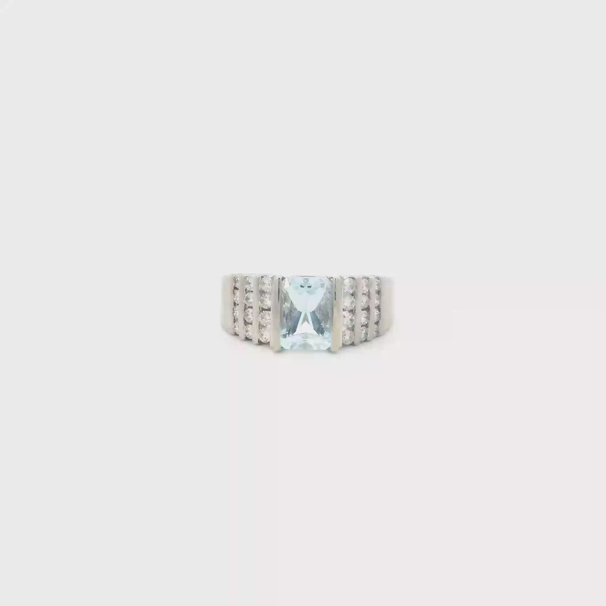 14K White Gold Diamond & Aquamarine Women's Ring - 0.46ct