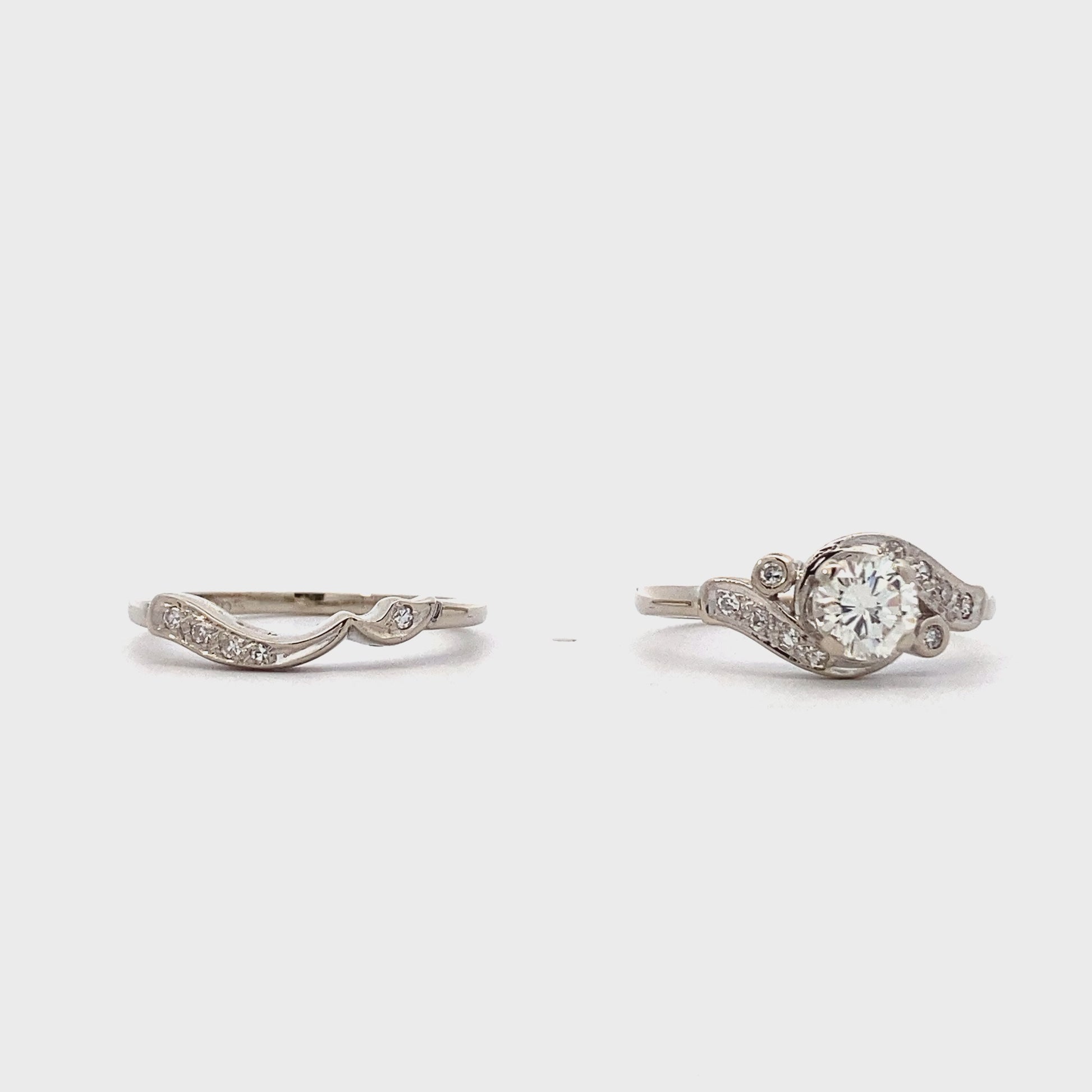 14K White Gold Diamond Engagement & Wedding Ring Set - 0.7ct