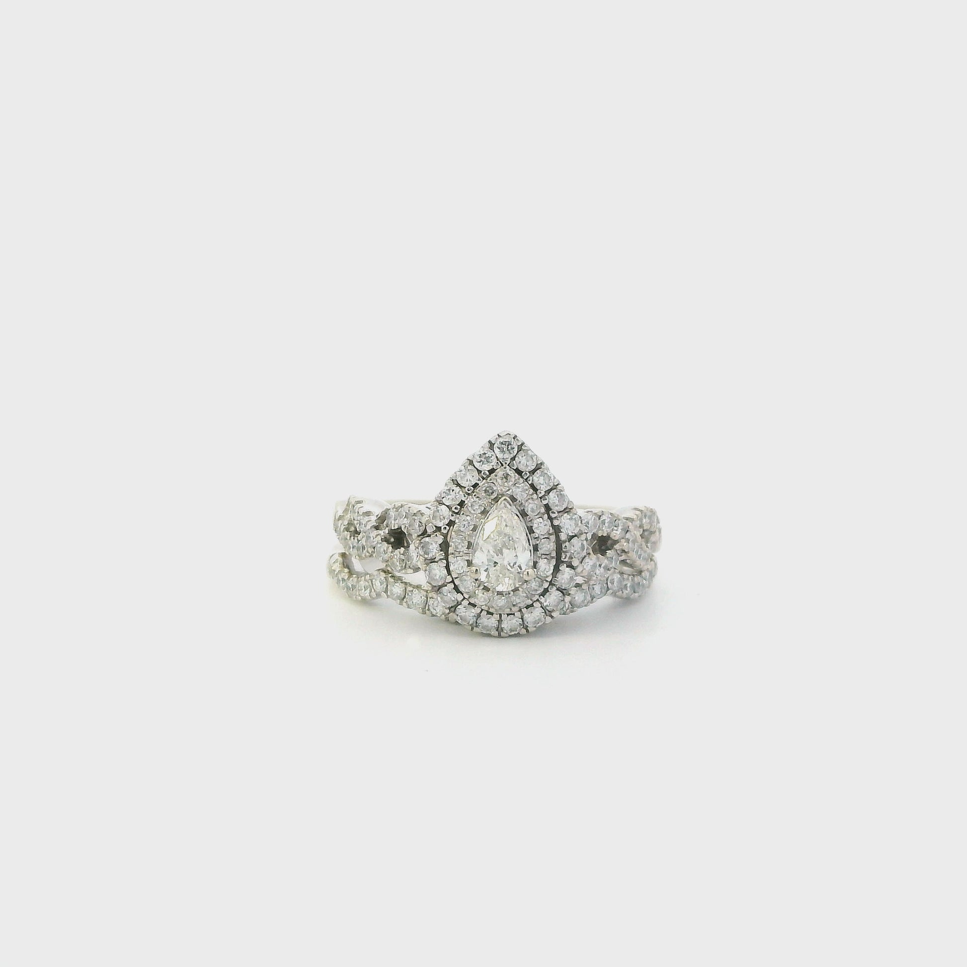 14K White Gold Diamond Engagement & Wedding Ring Set - 0.80ct