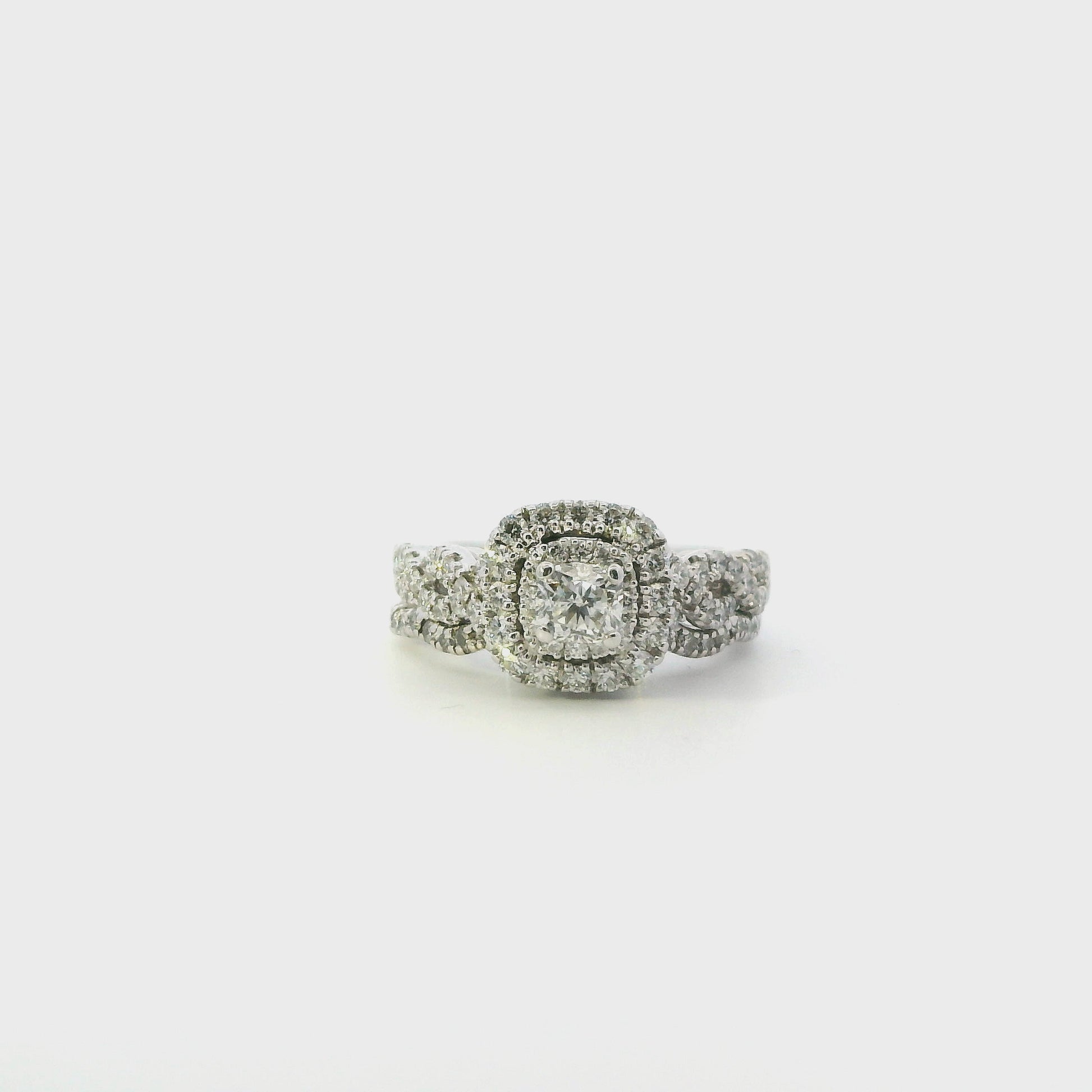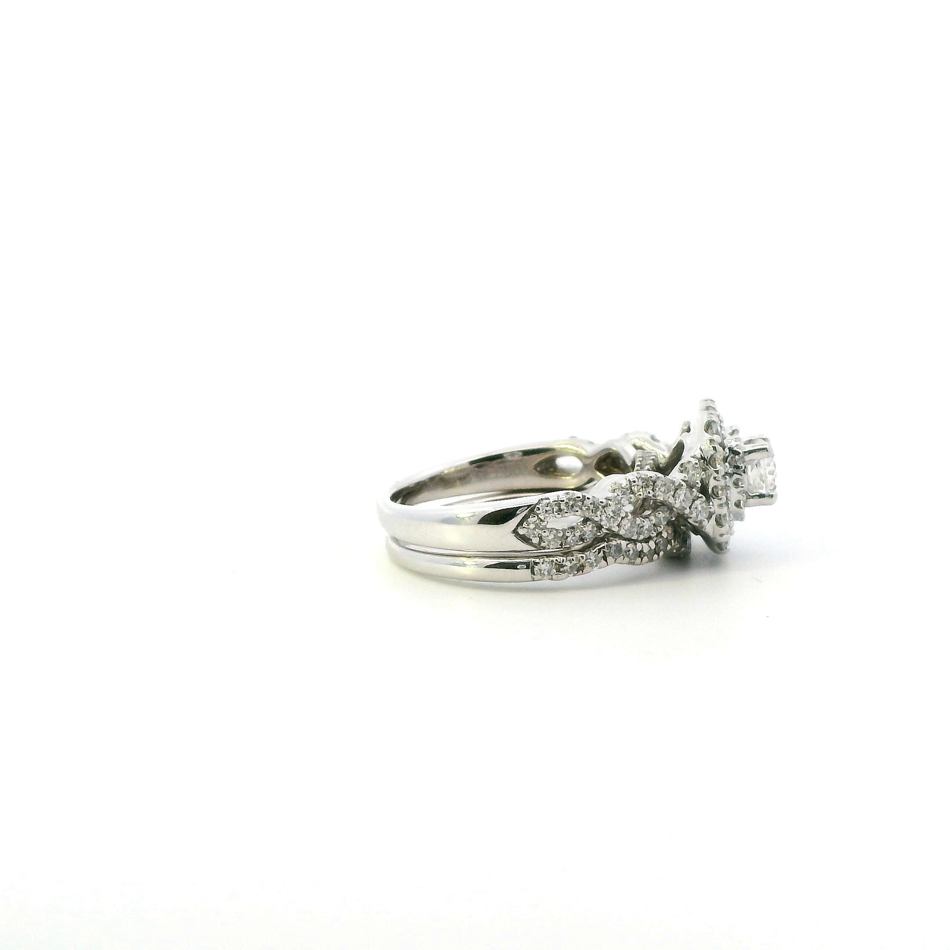 14K White Gold Diamond Engagement & Wedding Ring Set - 1.36ct