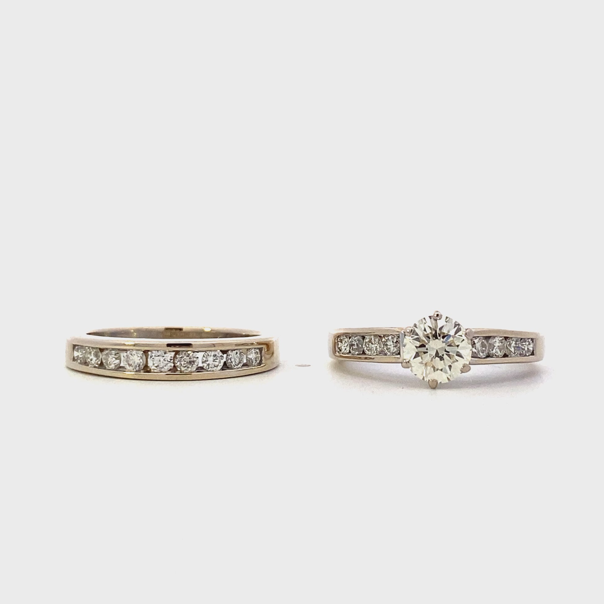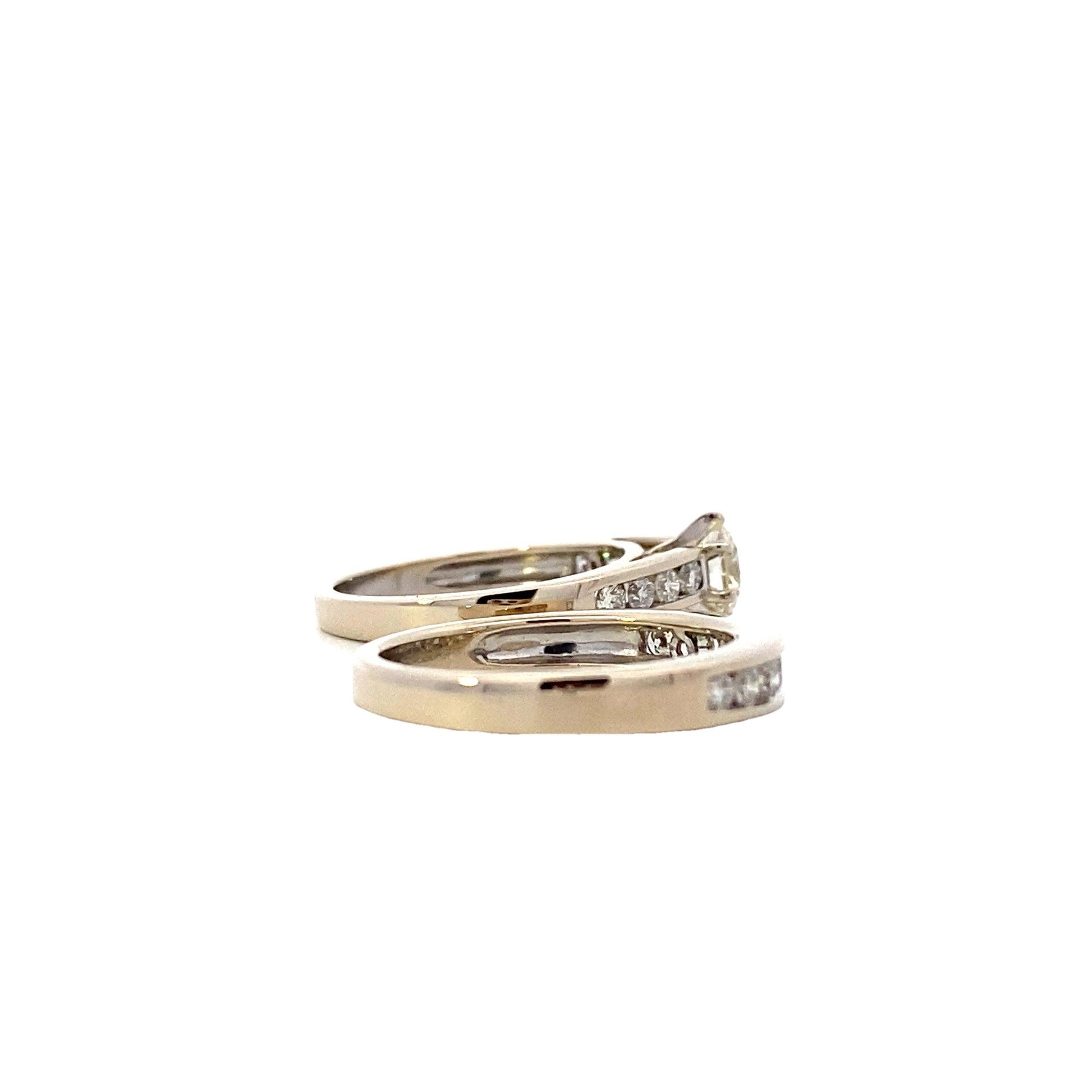 14K White Gold Diamond Engagement & Wedding Ring Set - 1.47ct
