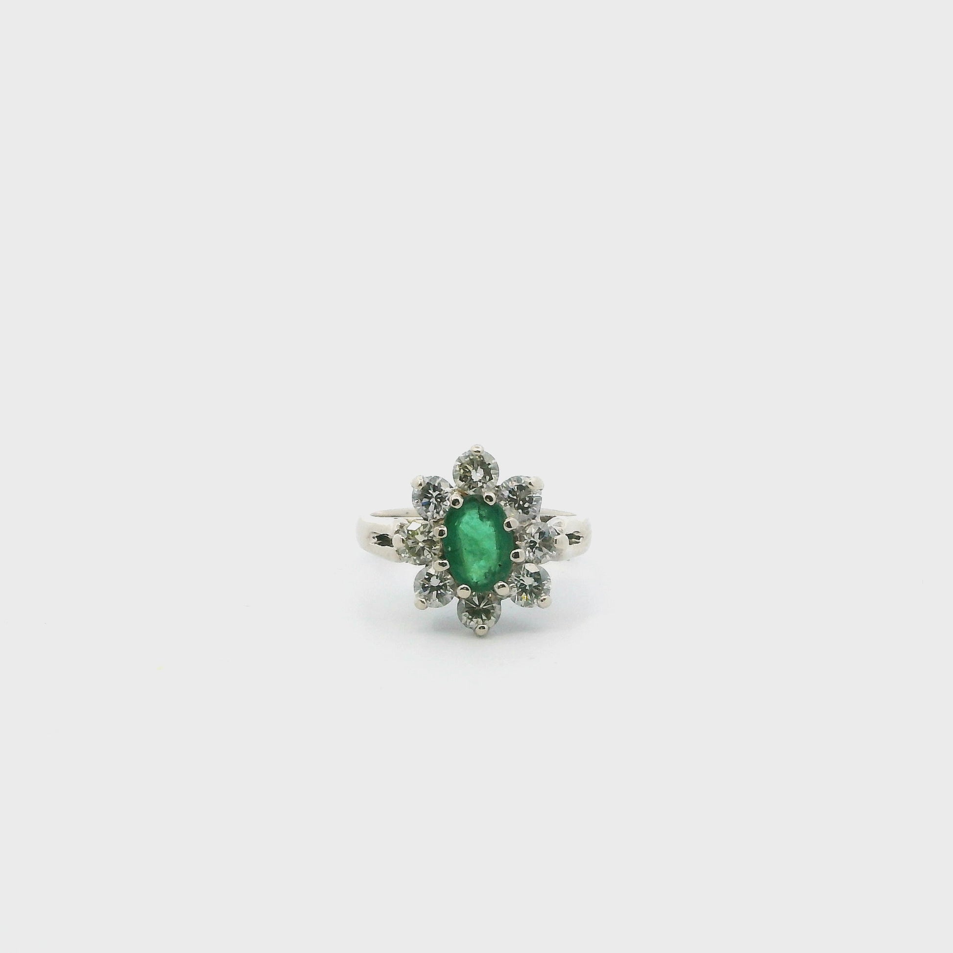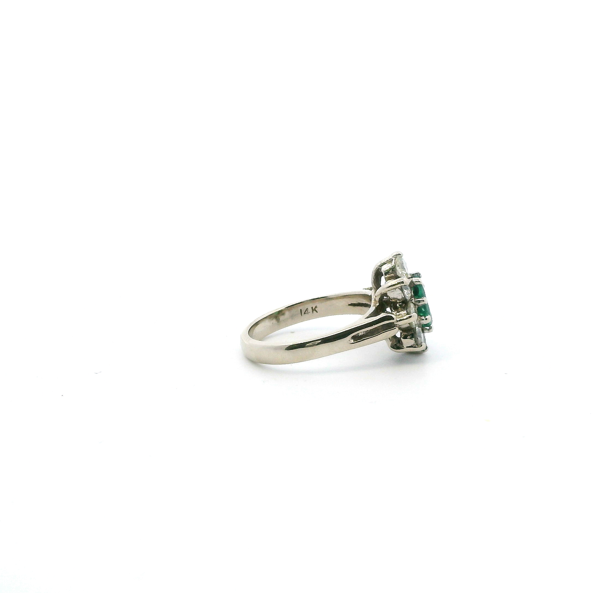 14K White Gold Emerald & Diamond Womens Ring - 0.80ct