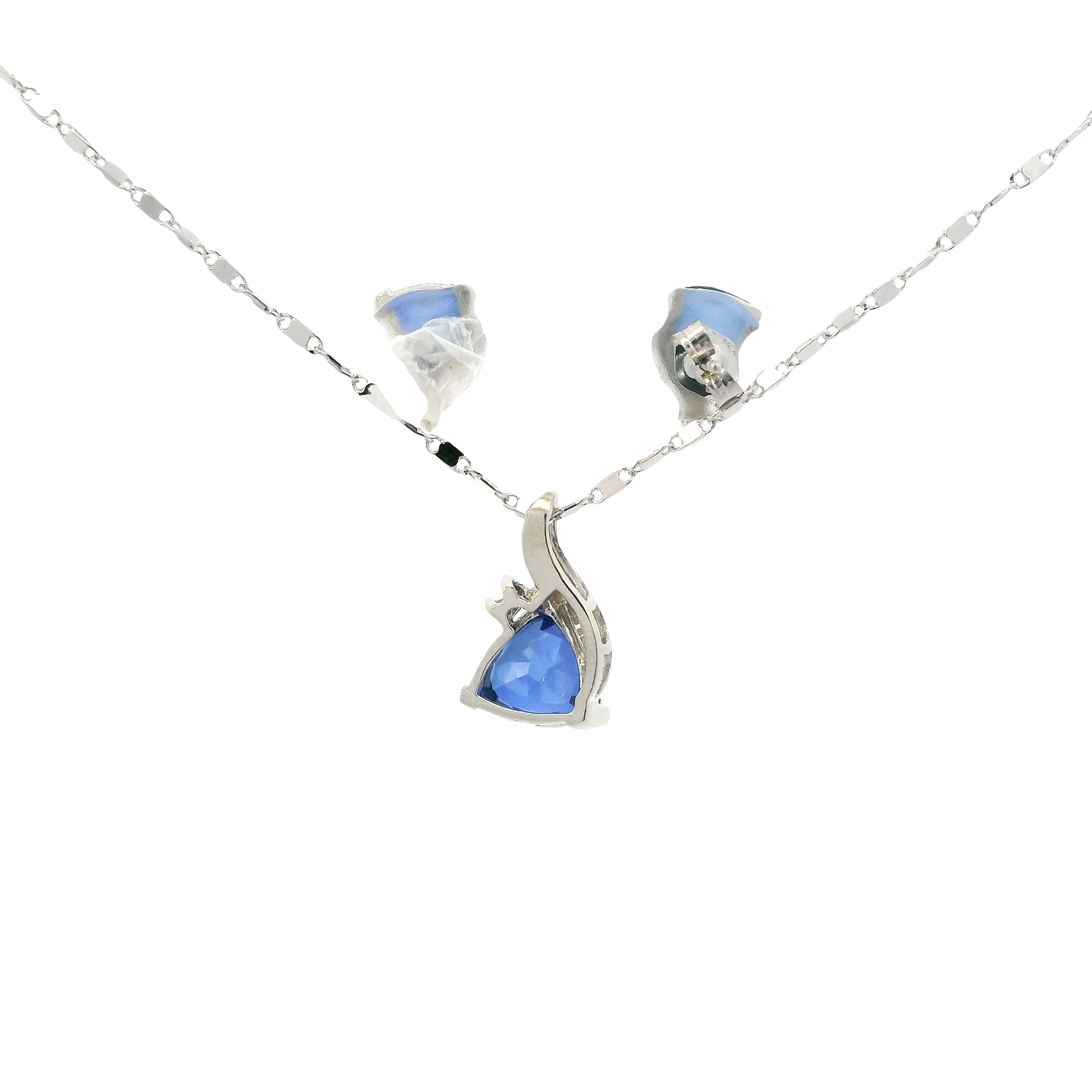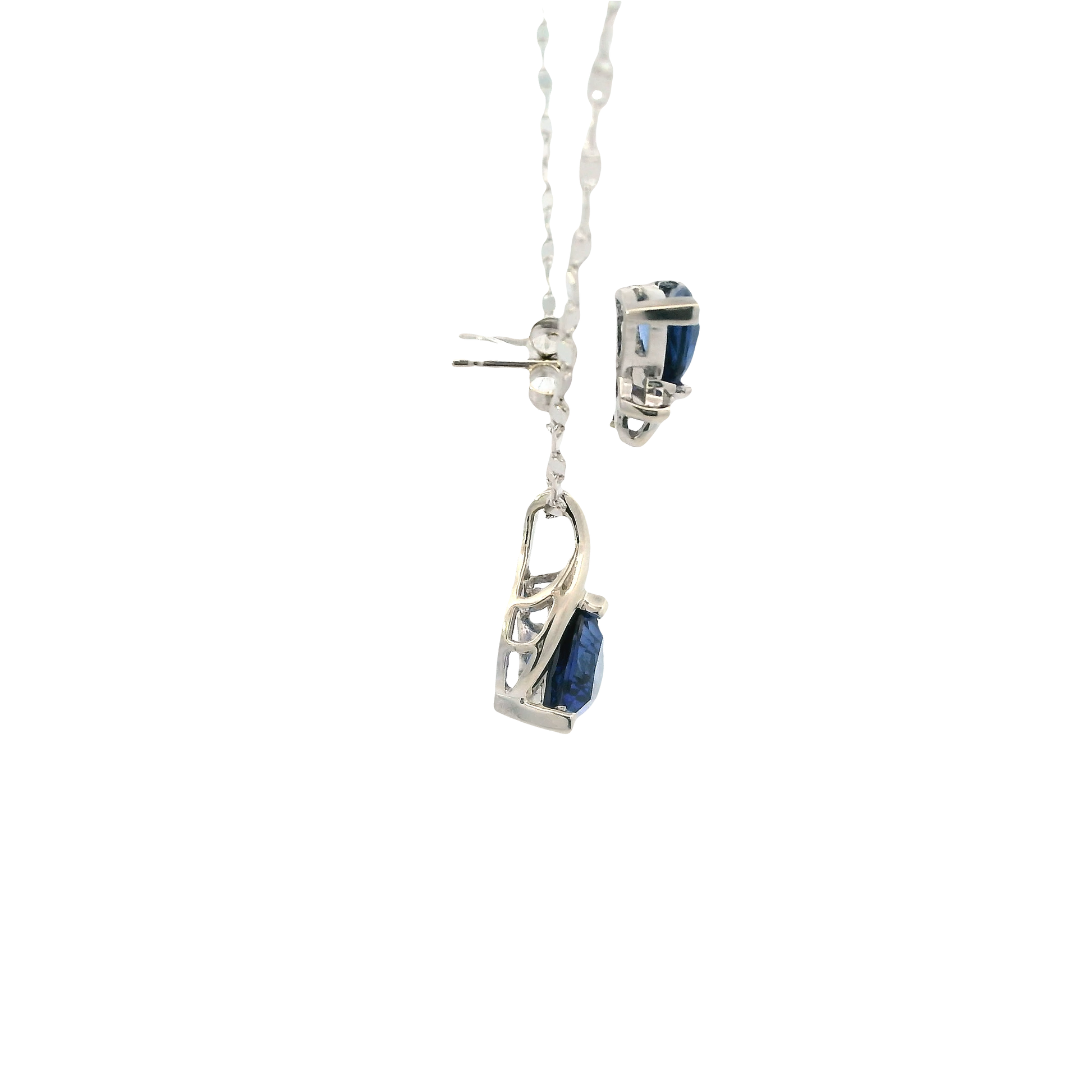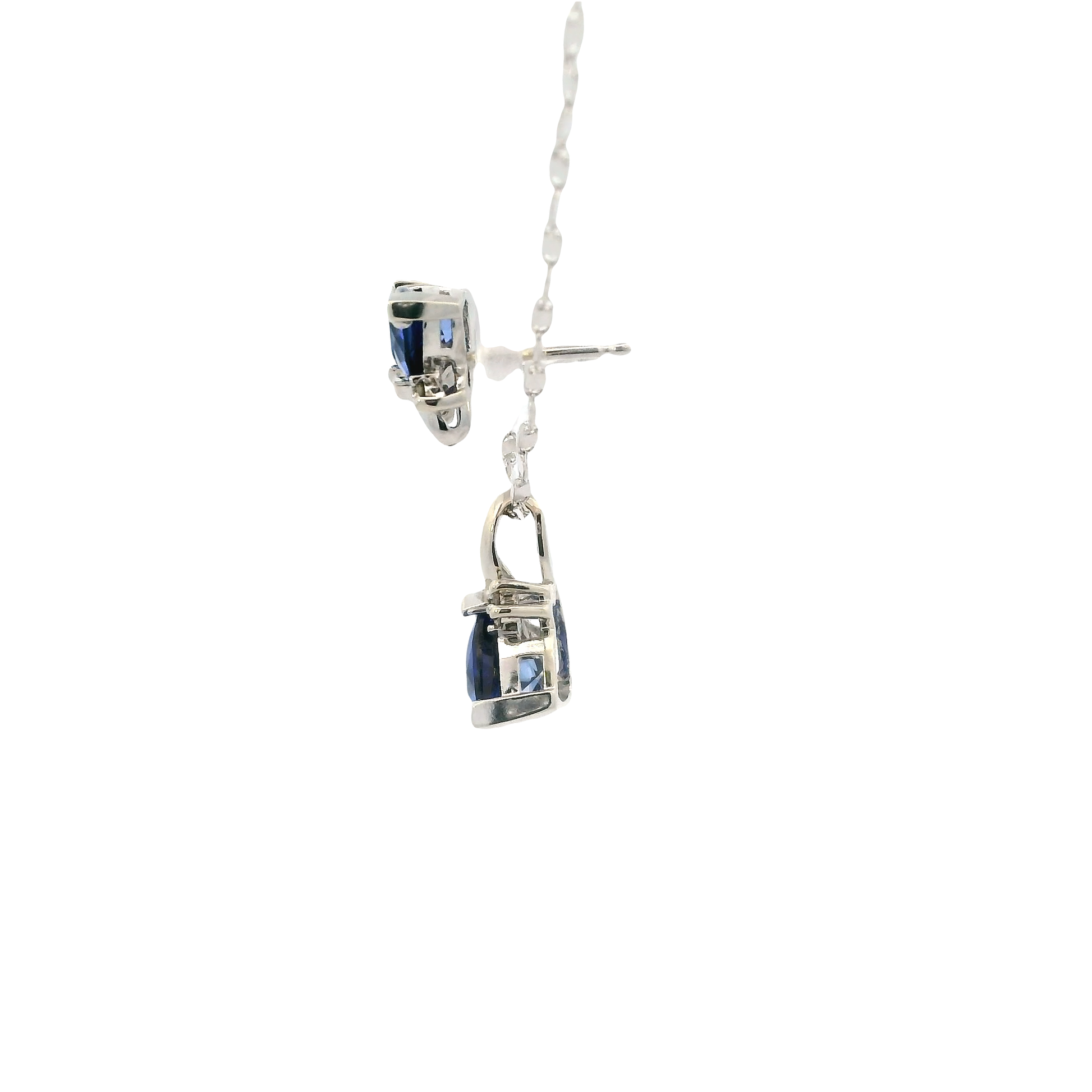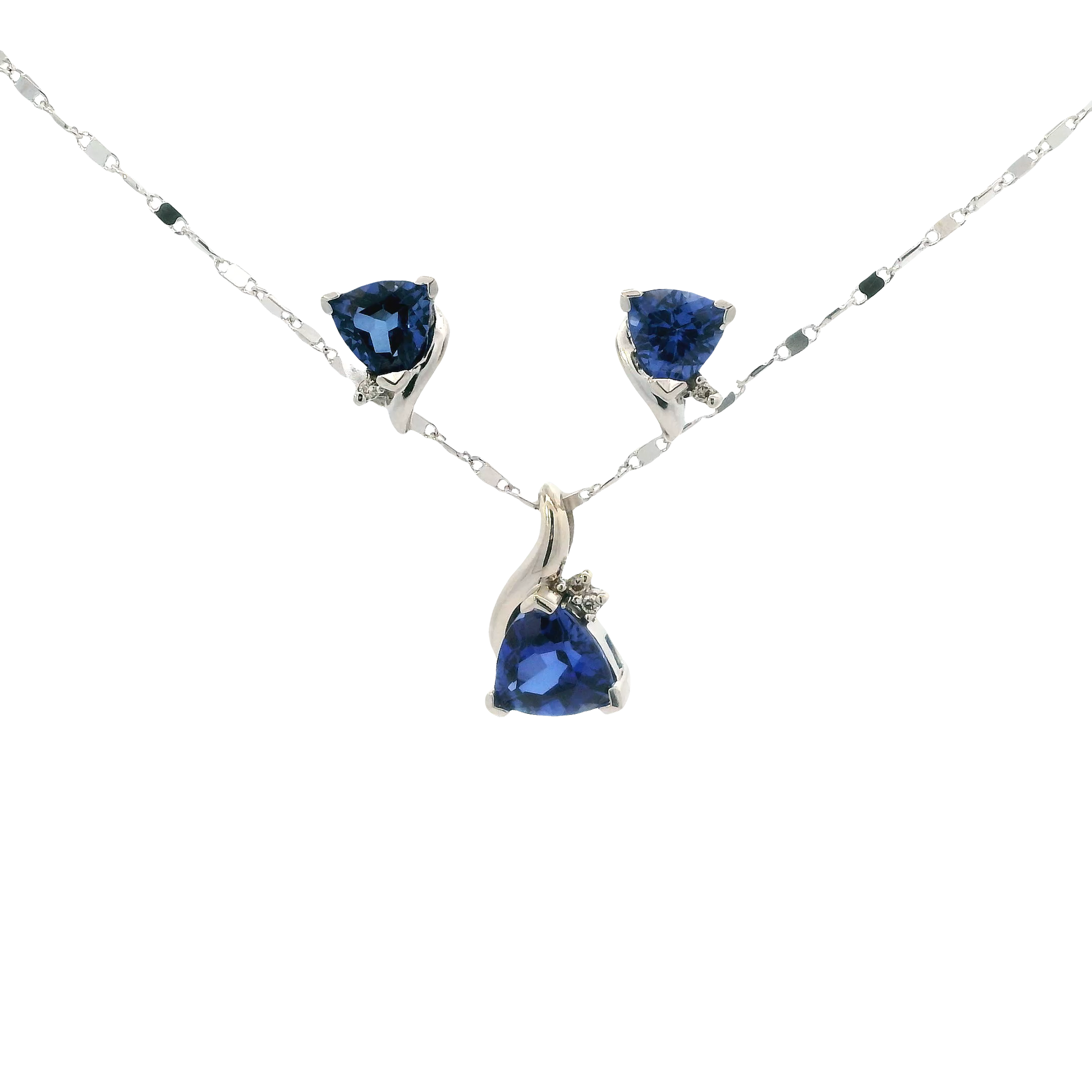 14K White Gold Sapphire & Diamond Matching Jewelry Set - 0.03ct