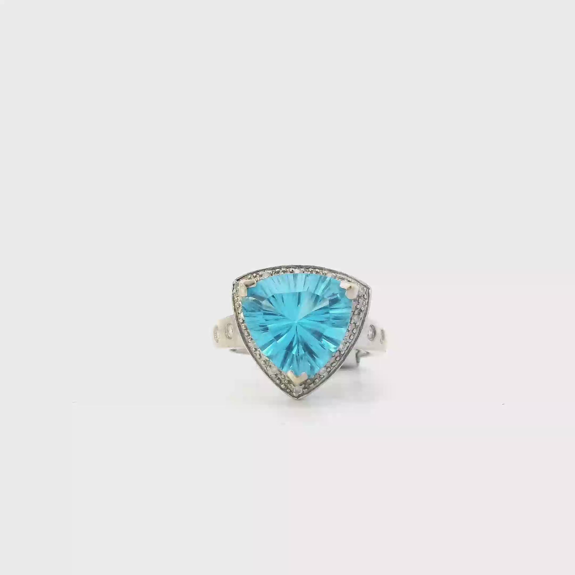 14K White Gold Trillion Blue Topaz & Diamond Women's Ring - 0.19ct