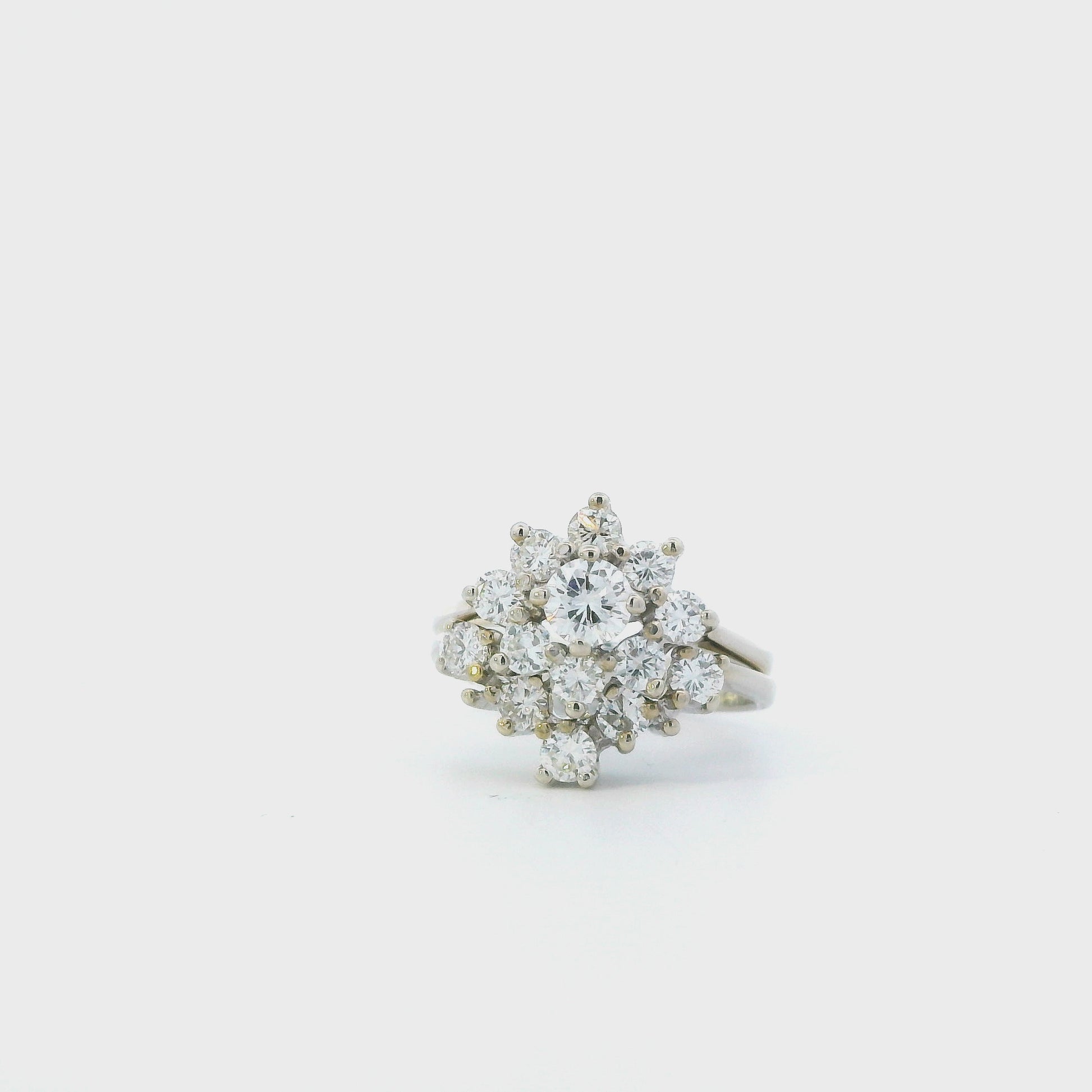 14K White Gold Womens Diamond Engagement & Wedding Ring Set - 1.58ct