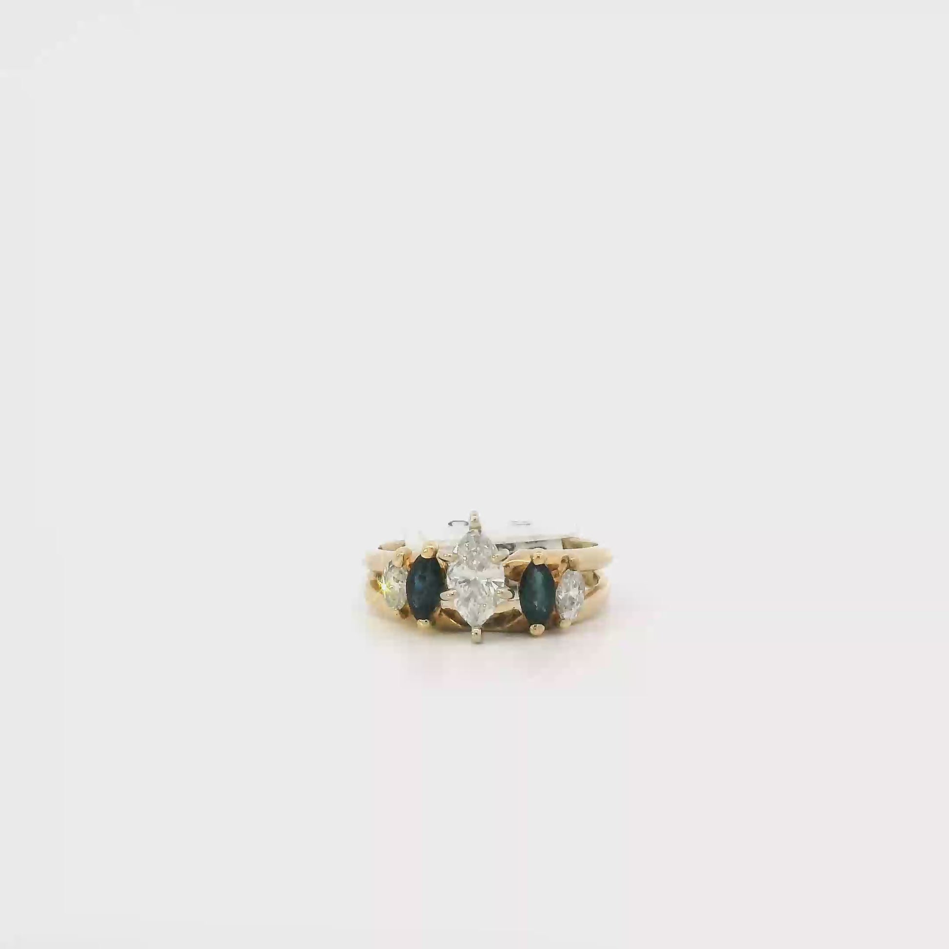 14K Yellow & White Gold Diamond & Sapphire Engagement & Wedding Ring Set - 0.68ct