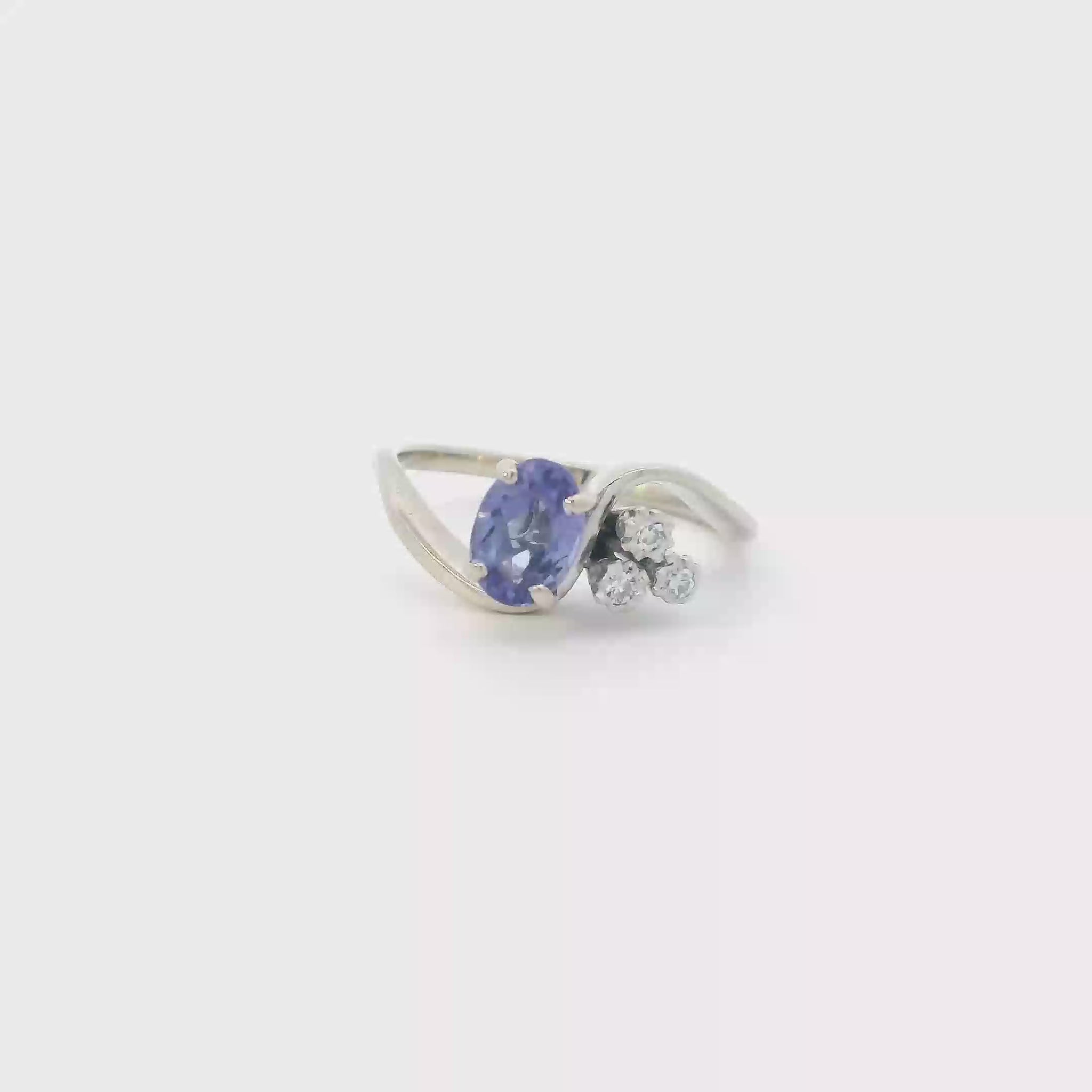 18K White Gold Tanzanite & Diamond Womens Ring - 0.03ct