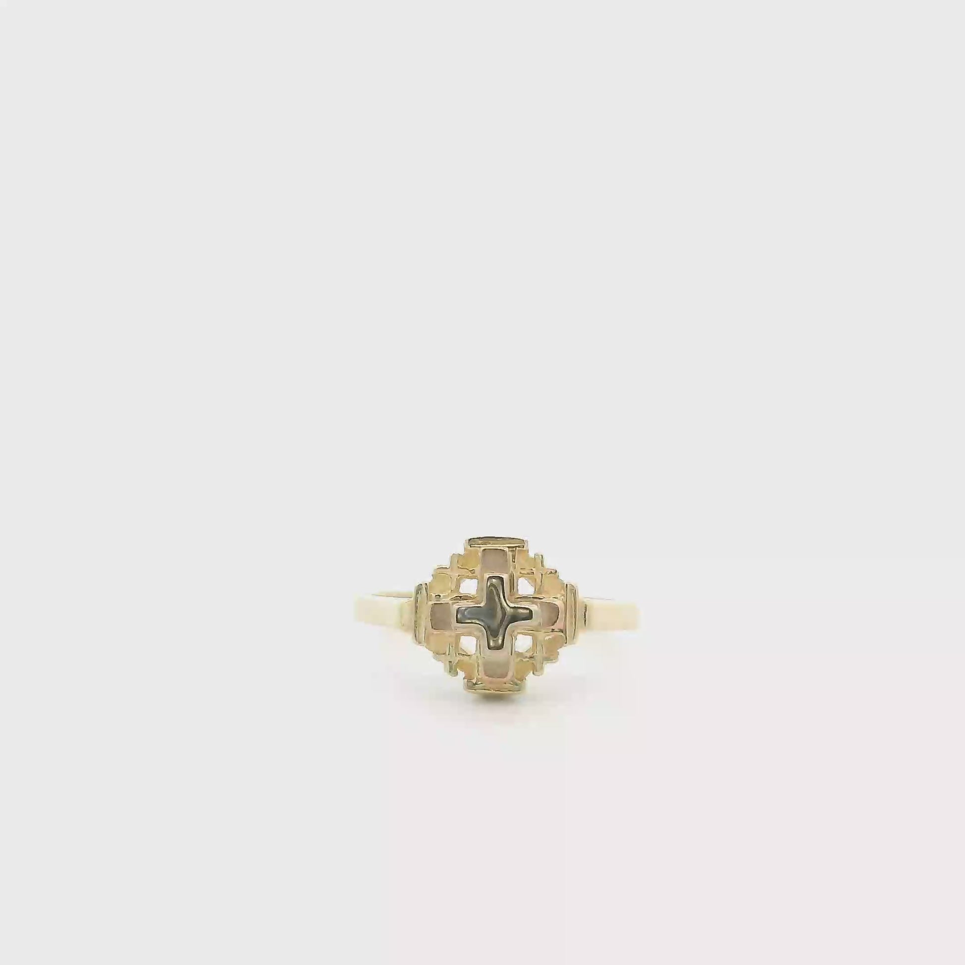 This is a beautiful gold multi cross ring that is in clean preowned condition. It has been authenticated and polished by our in-house goldsmith / gemologist.
