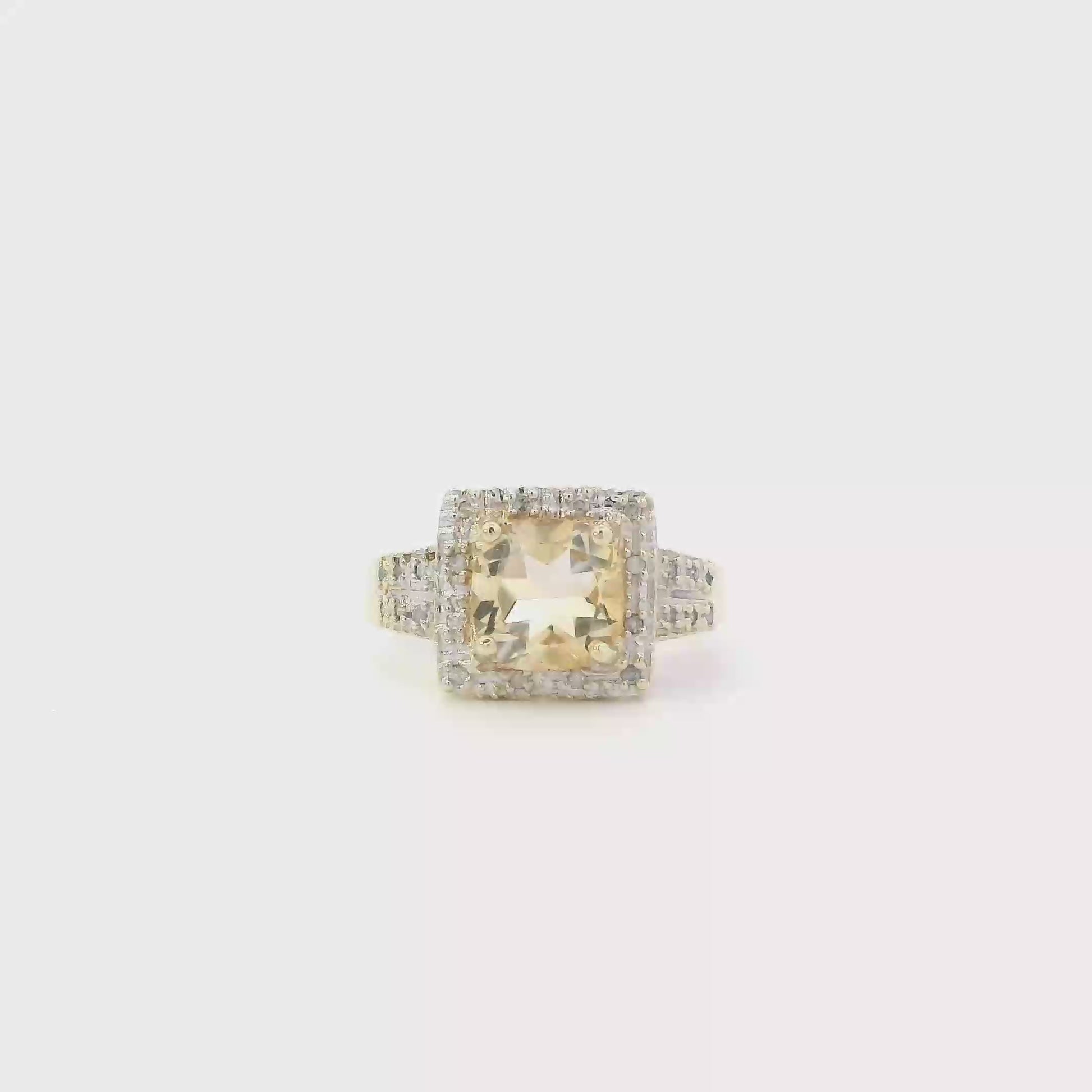 10K Yellow Gold Citrine & Diamonds Womens Ring - 0.06ct