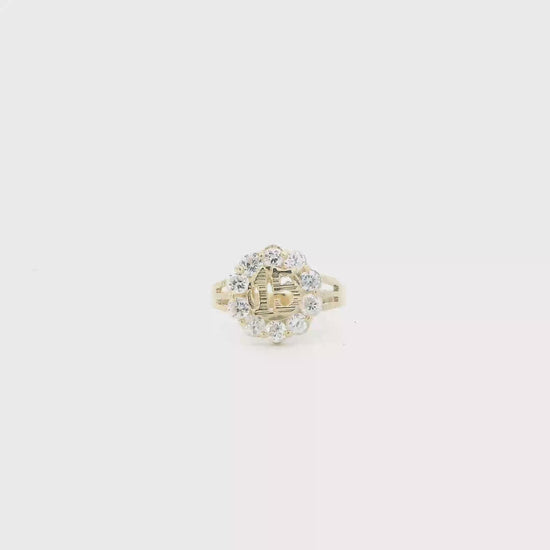 14K Yellow Gold CZ "15" Flower Womens Ring