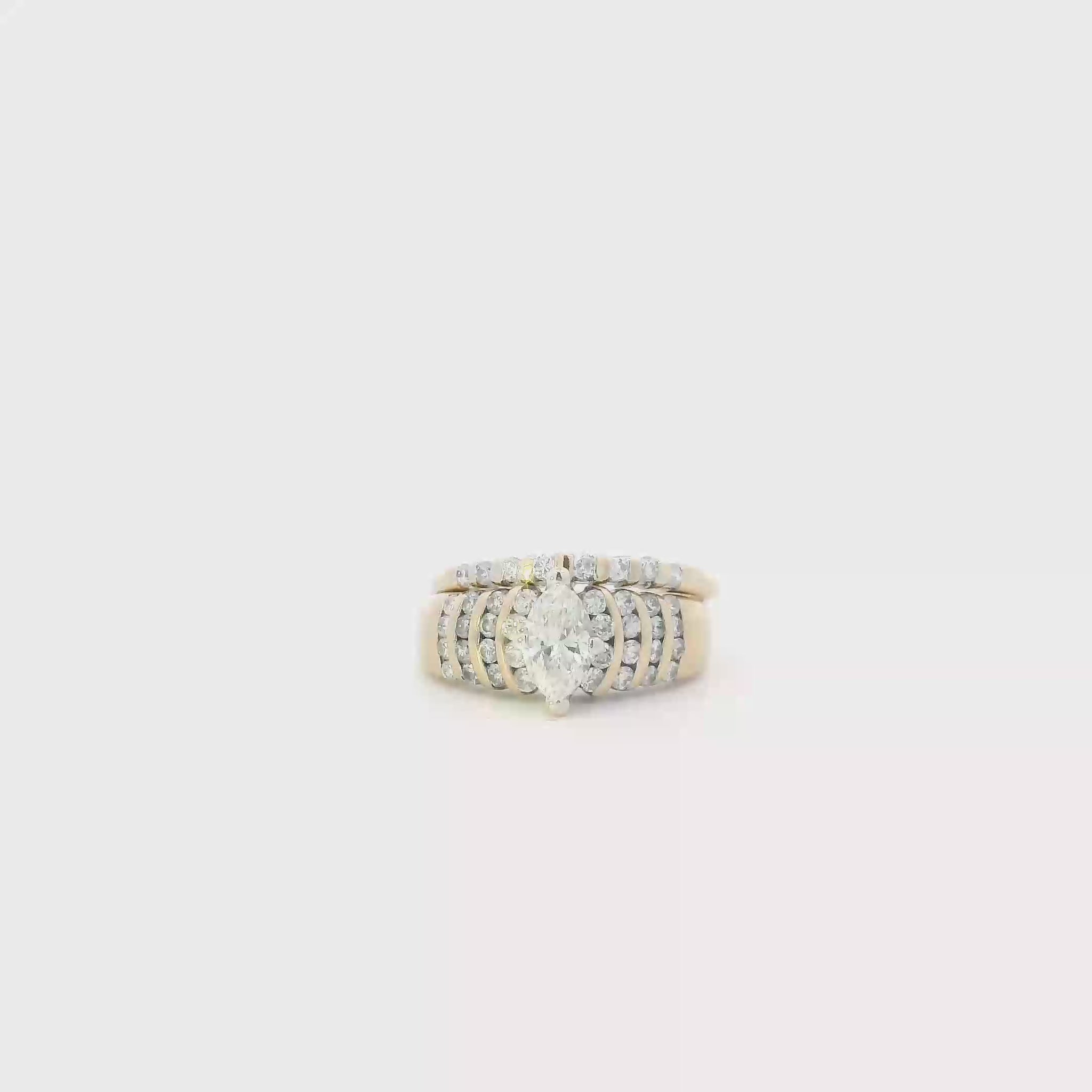 14K Yellow Gold Diamond Womans Engagement & Wedding Ring Set - 1.0ct