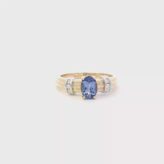 18K Yellow Gold Tanzanite & Diamonds Womens Ring - 0.08ct
