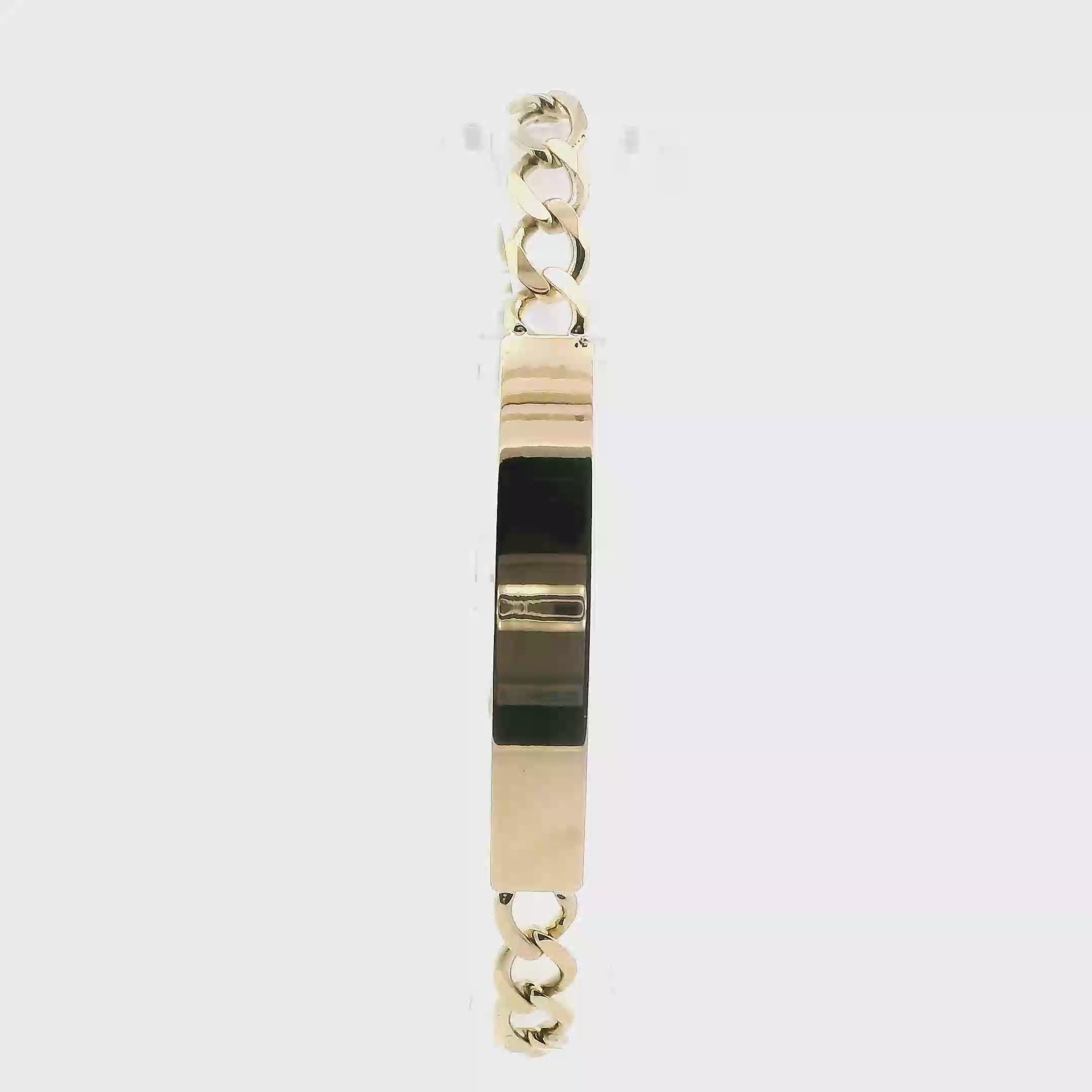 This is a beautiful gold ID figaro bracelet that is in clean preowned condition. It has been authenticated and polished by our in-house goldsmith.