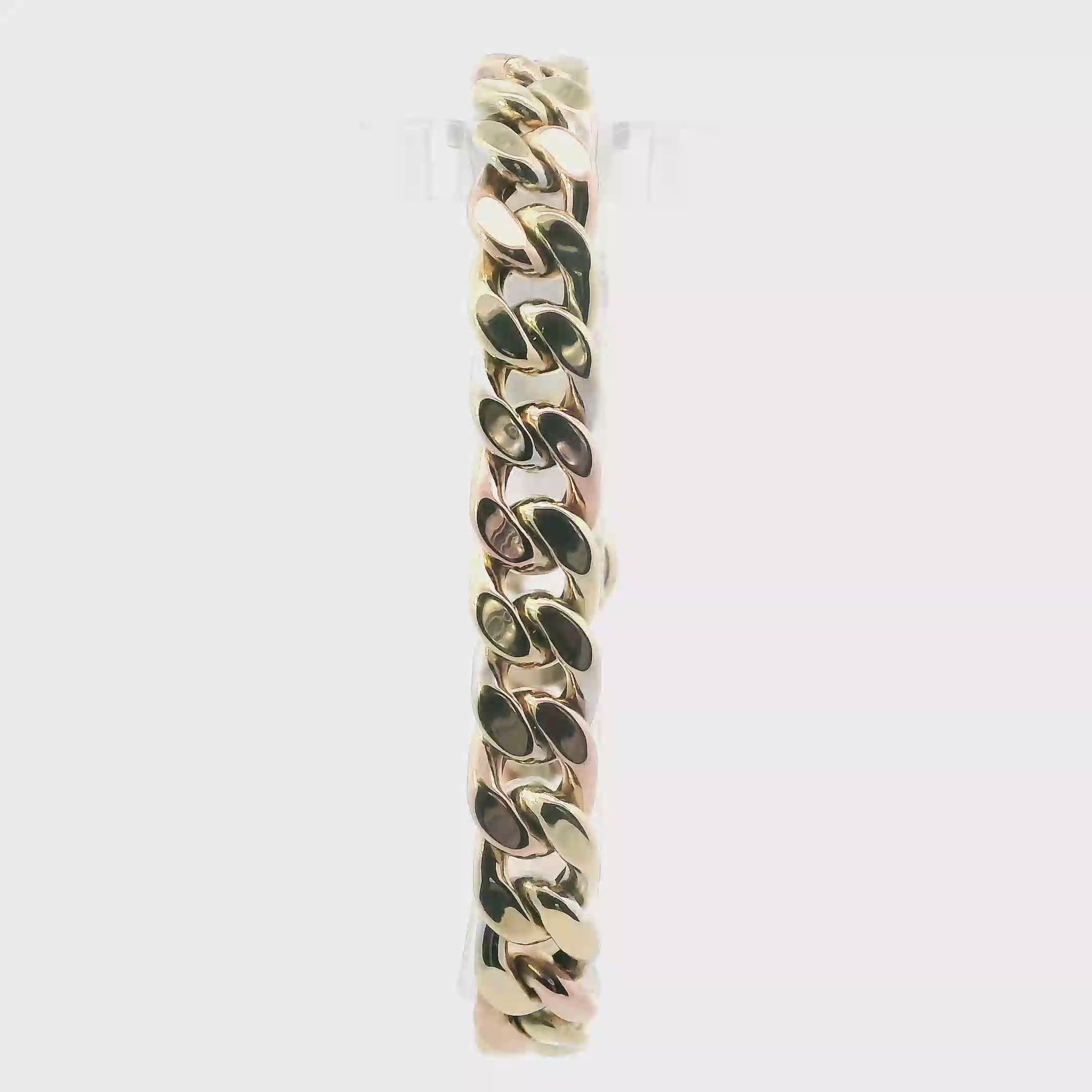 14K Tri Color Gold 8.25" Cuban Link Bracelet