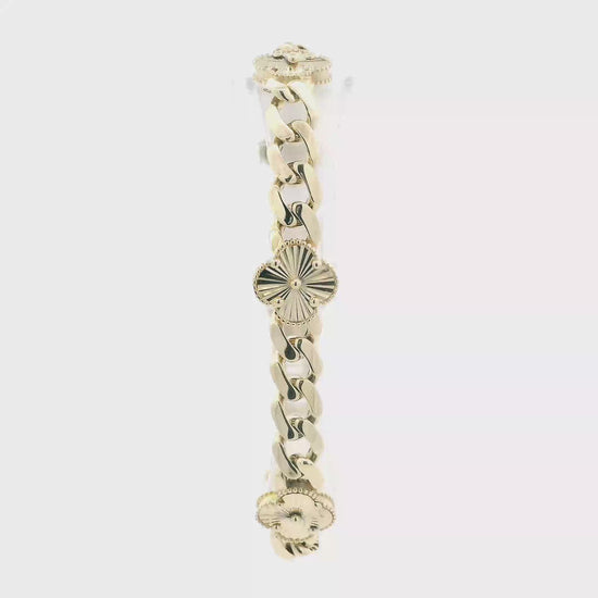 This is a beautiful gold clover curb link bracelet that is in clean preowned condition. It has been authenticated and polished by our in-house goldsmith.
