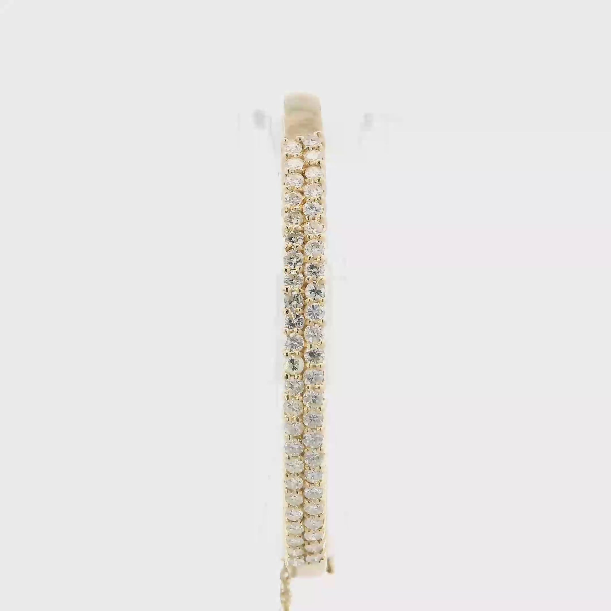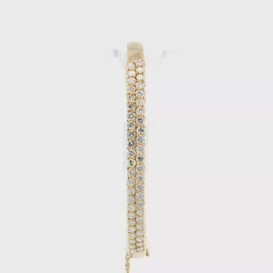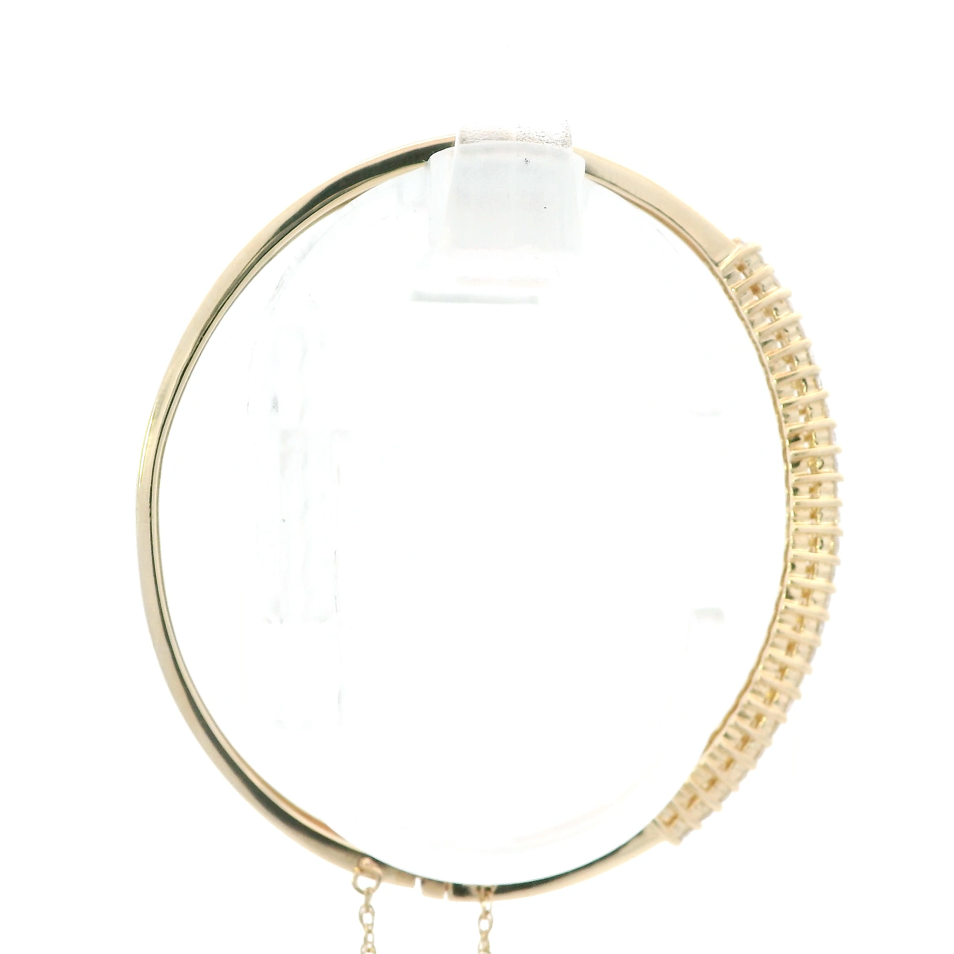 14K Yellow Gold Diamond Bangle Bracelet With Safety Chain