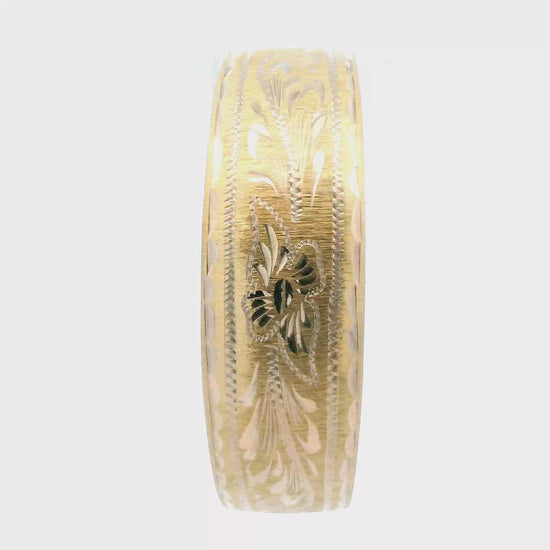 This is a beautiful gold floral bangle that is in clean condition. It has been authenticated and polished by our in-house goldsmith.