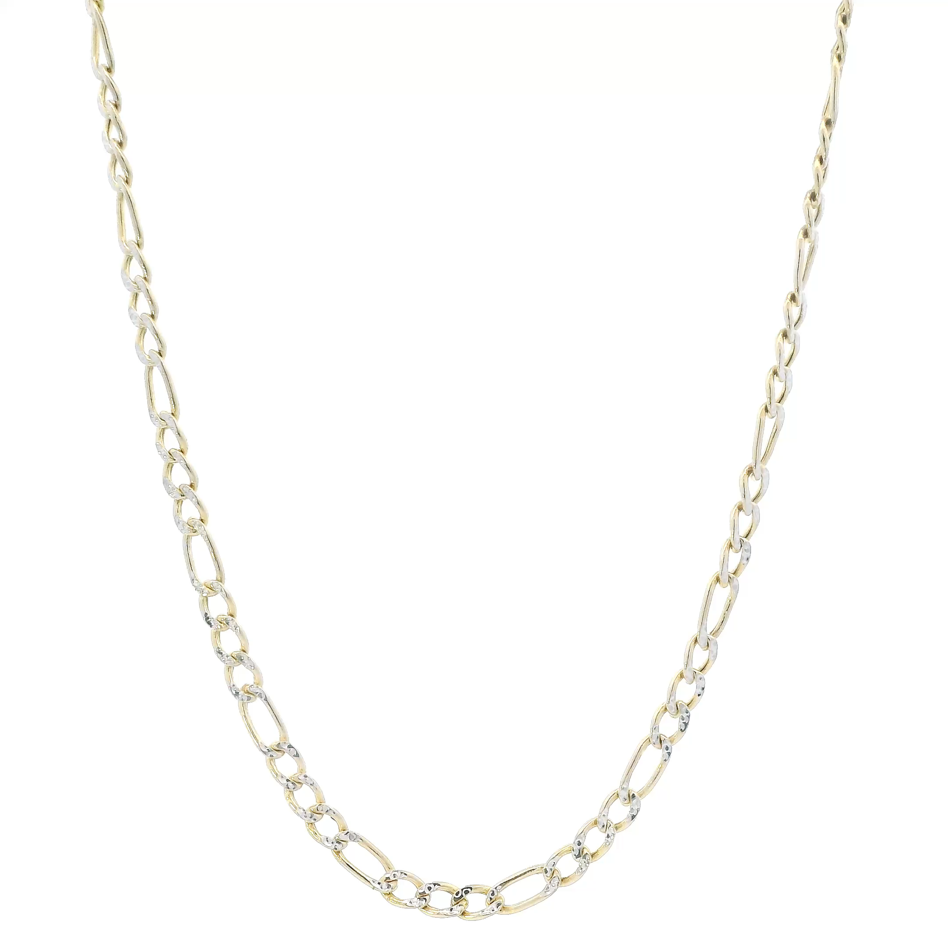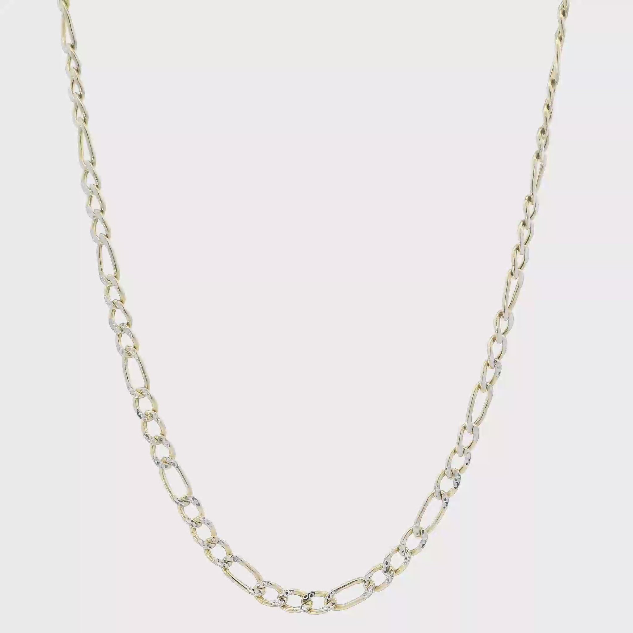 This is a beautiful gold diamond cut figaro chain that is in clean preowned condition. It has been authenticated and polished by our in-house goldsmith.