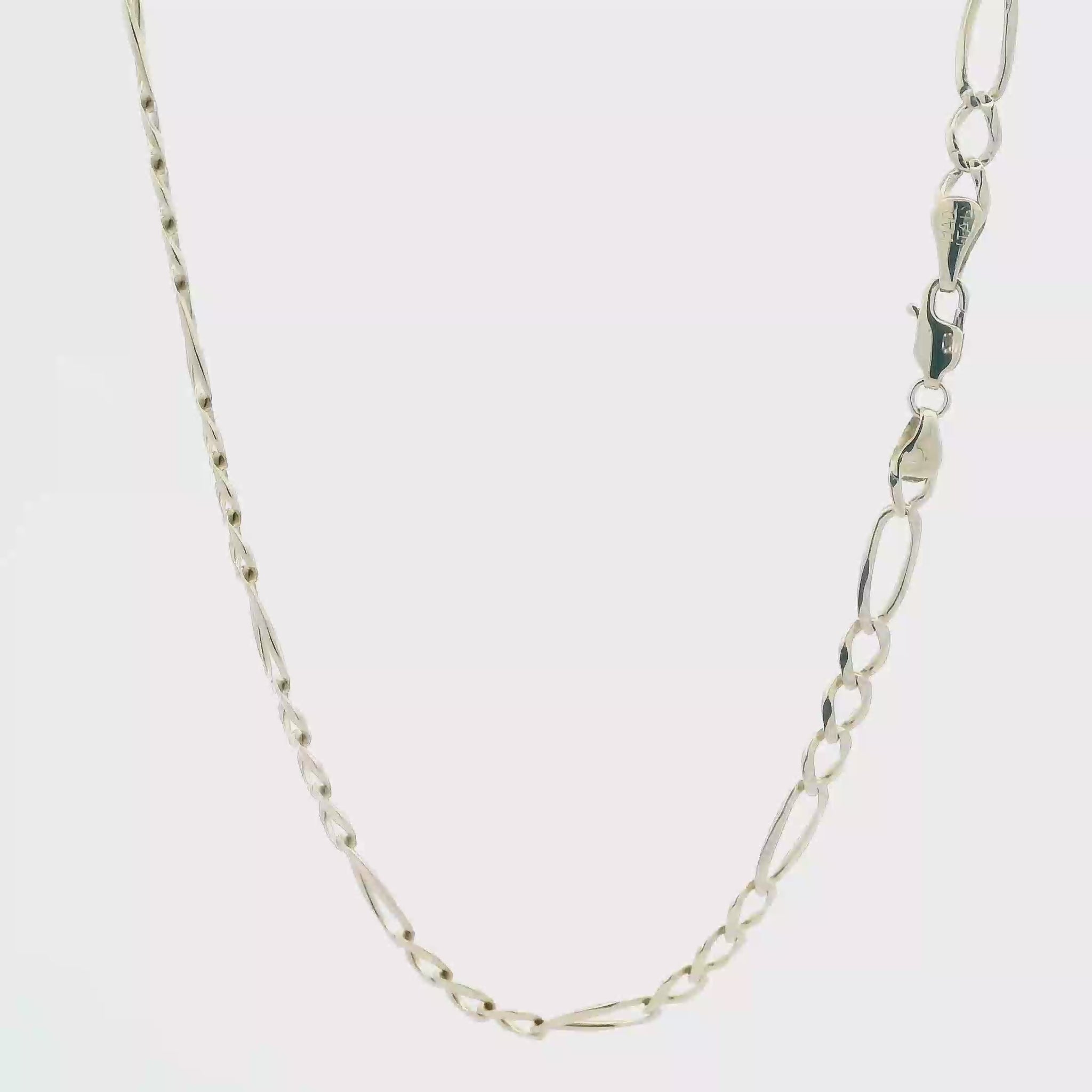 This is a beautiful gold figaro chain that is in clean preowned condition. It has been authenticated and polished by our in-house goldsmith.